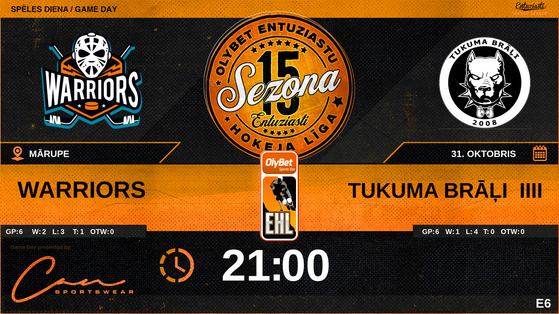 | 00:00 | WRS | GK In | #31 Dmitrijs Sarkisovs |