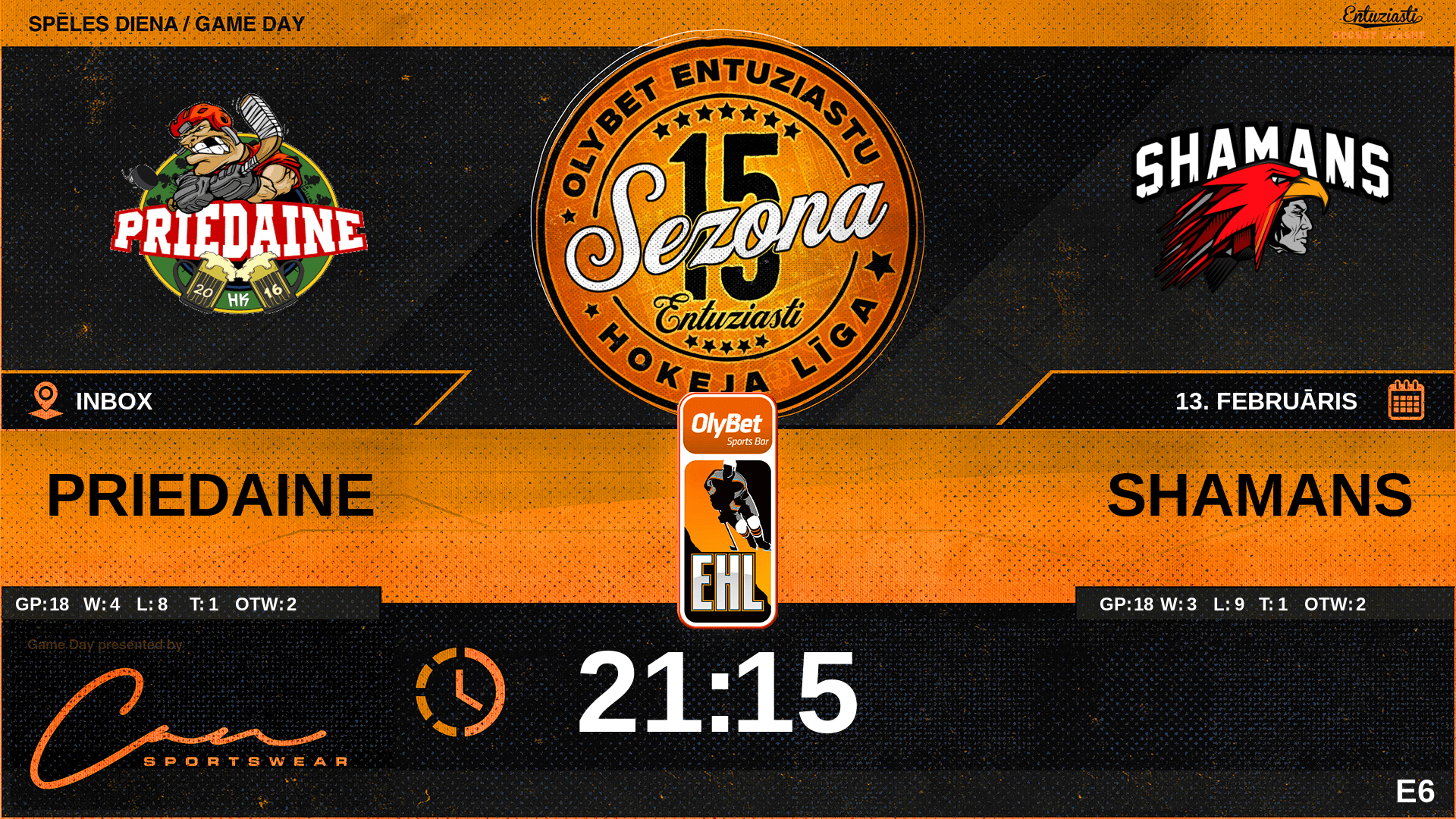 | 00:00 | PRE | GK In | #1 Vladislavs Belajs |