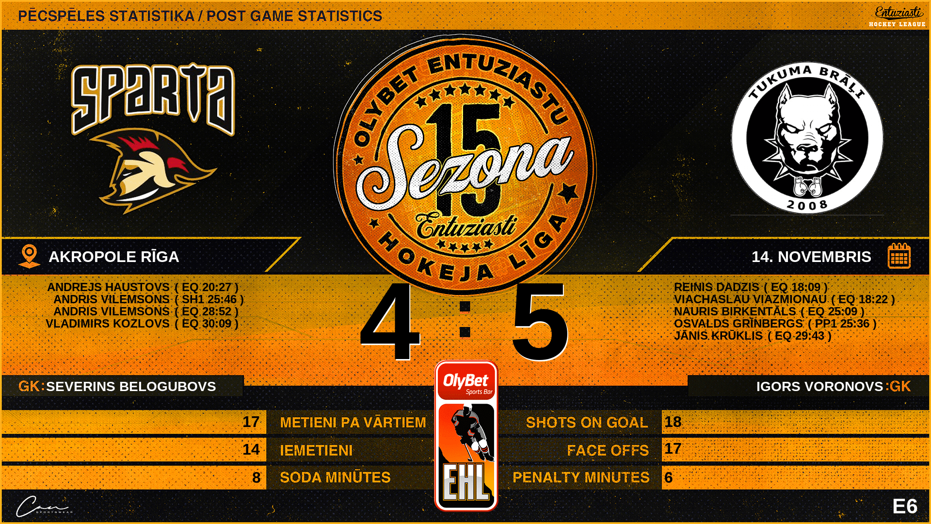 | 36:00 | TB4 | GK Out | #80 Igors Voronovs |