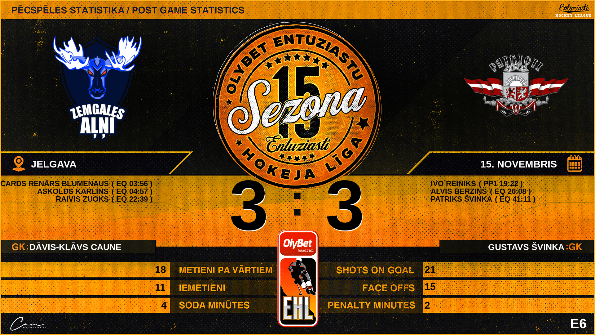 | 03:56 | ZGA | Vārti (EQ) | #92 Ričards Renārs Blumenaus, piespēles: #7 Kalvis Melderis |
