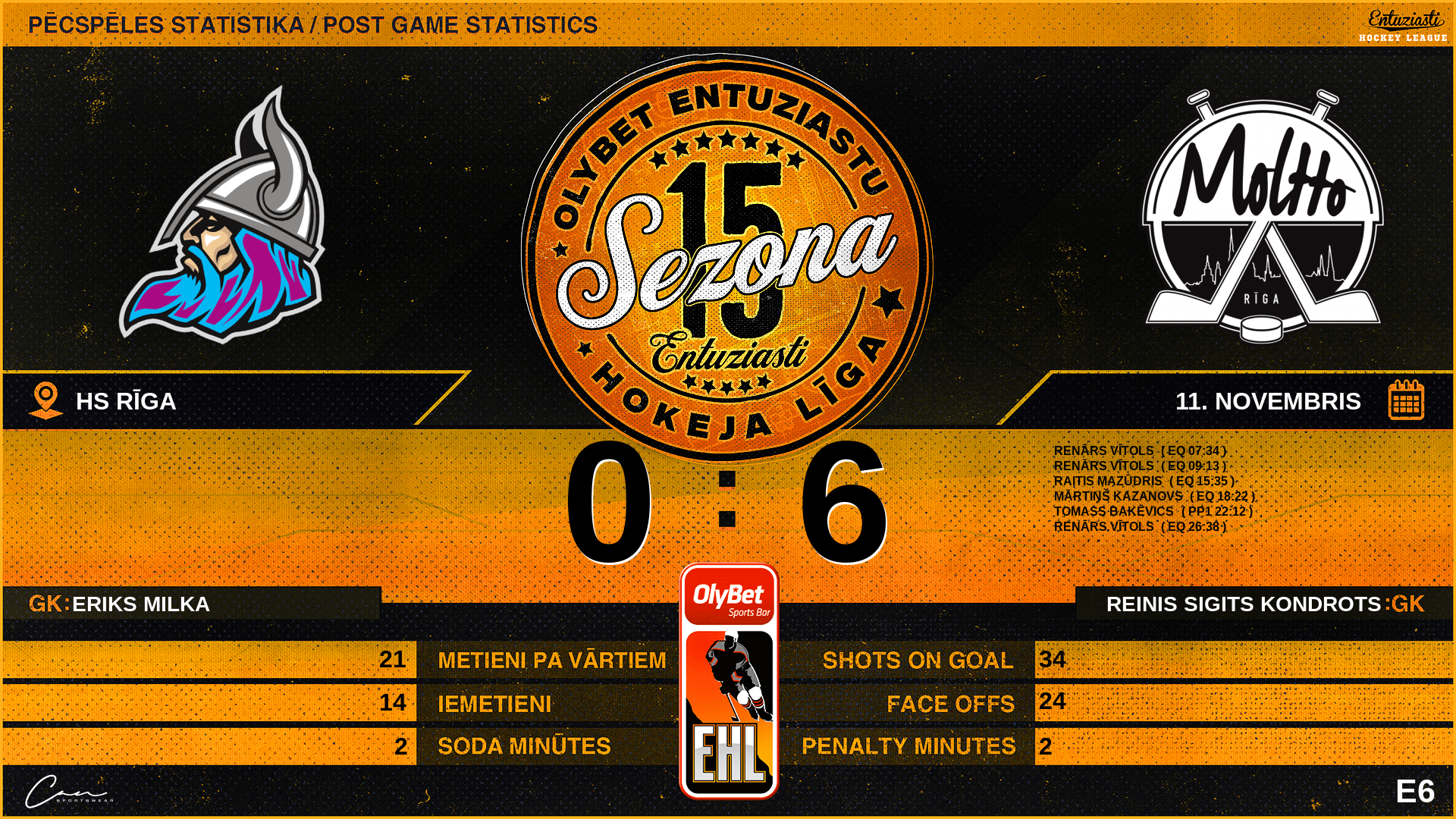 | 18:22 | MTO | Vārti (EQ) | #60 Mārtiņš Kazanovs, piespēles: #70 Gints Andžāns, #59 Eduards Balodis |
