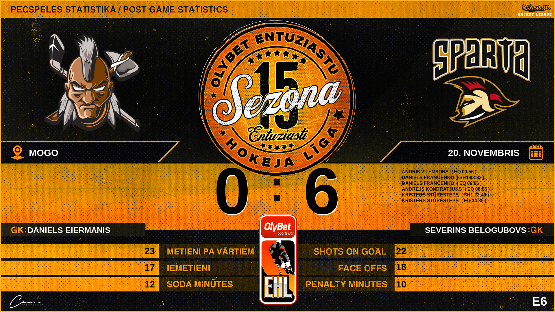 | 06:06 | SP2 | Vārti (EQ) | #72 Daniels Frančenko, piespēles: #10 Kristers Stūresteps, #85 Pauls Kristens Neijs |