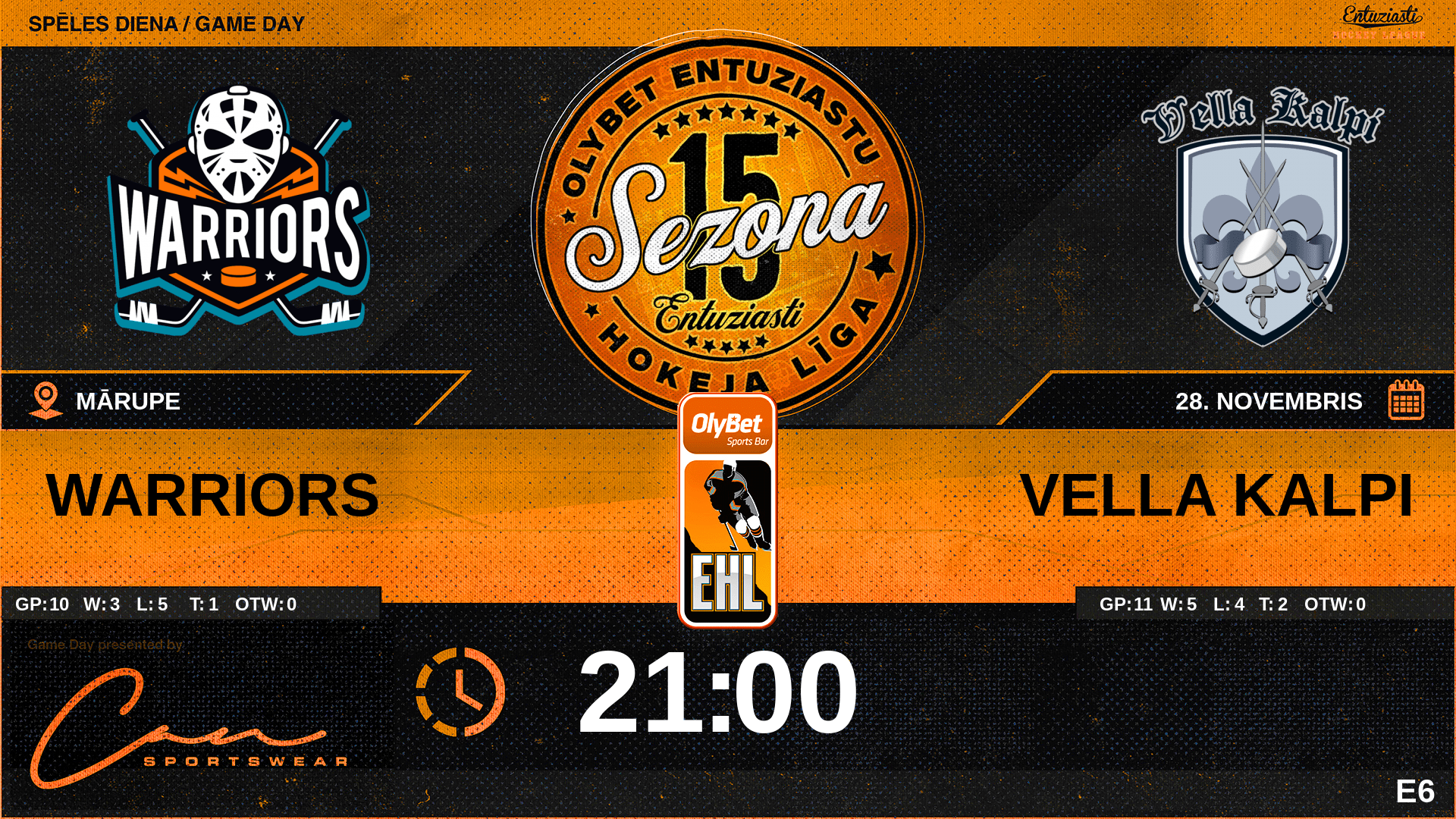 | 00:00 | VKA | GK In | #32 Rolands Priednieks |