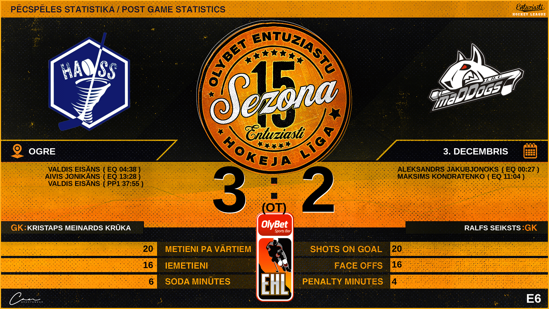 | 37:55 | HAS | GK Out | #32 Kristaps Meinards Krūka |