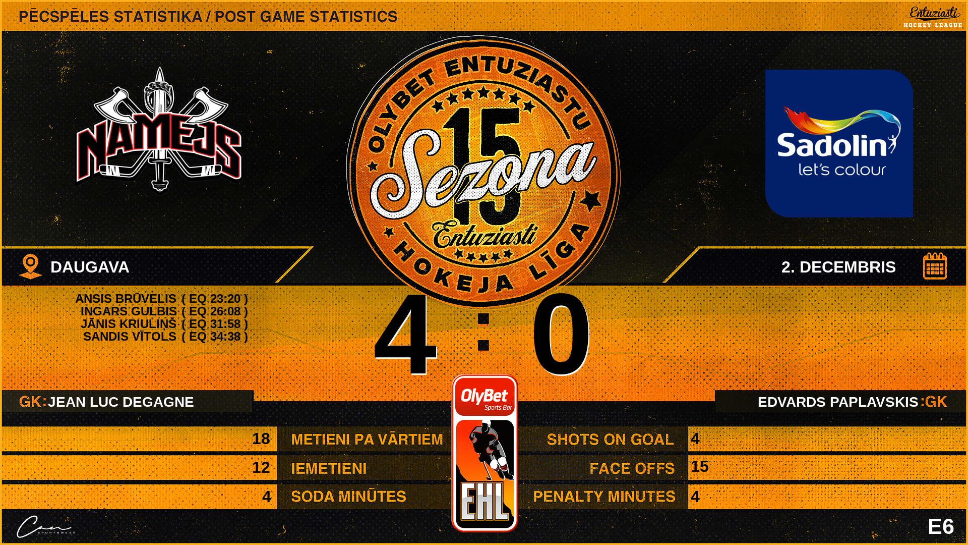 | 26:08 | NMJ | Vārti (EQ) | #16 Ingars Gulbis |