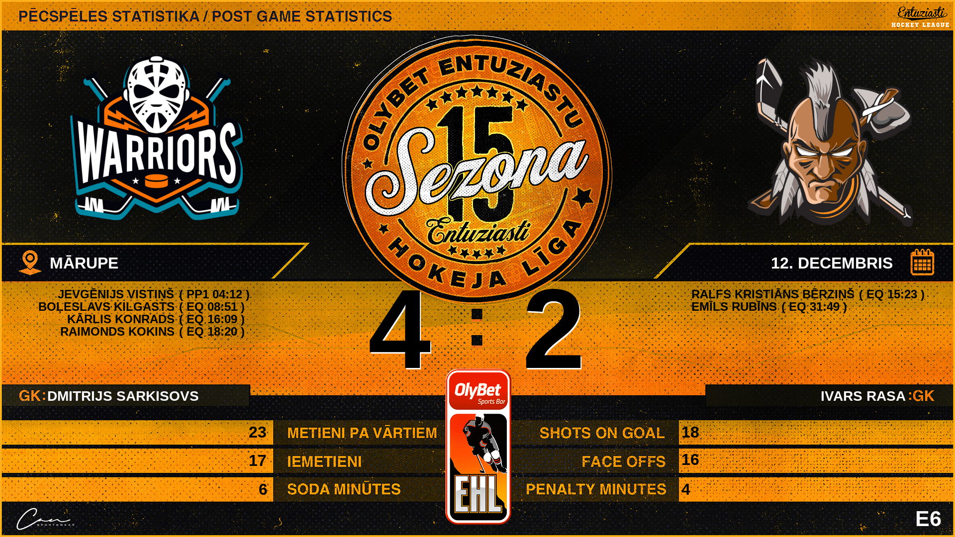 | 18:20 | WRS | Vārti (EQ) | #7 Raimonds Kokins, piespēles: #6 Kārlis Konrads, #11 Jānis Lauciņš |