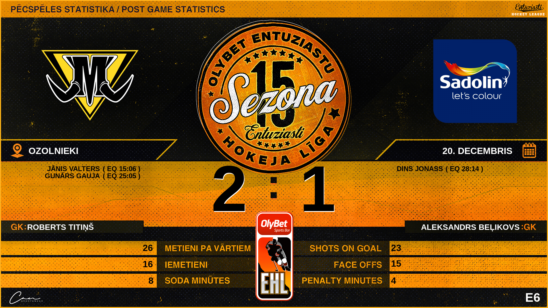 | 15:06 | MTH | Vārti (EQ) | #3 Jānis Valters |