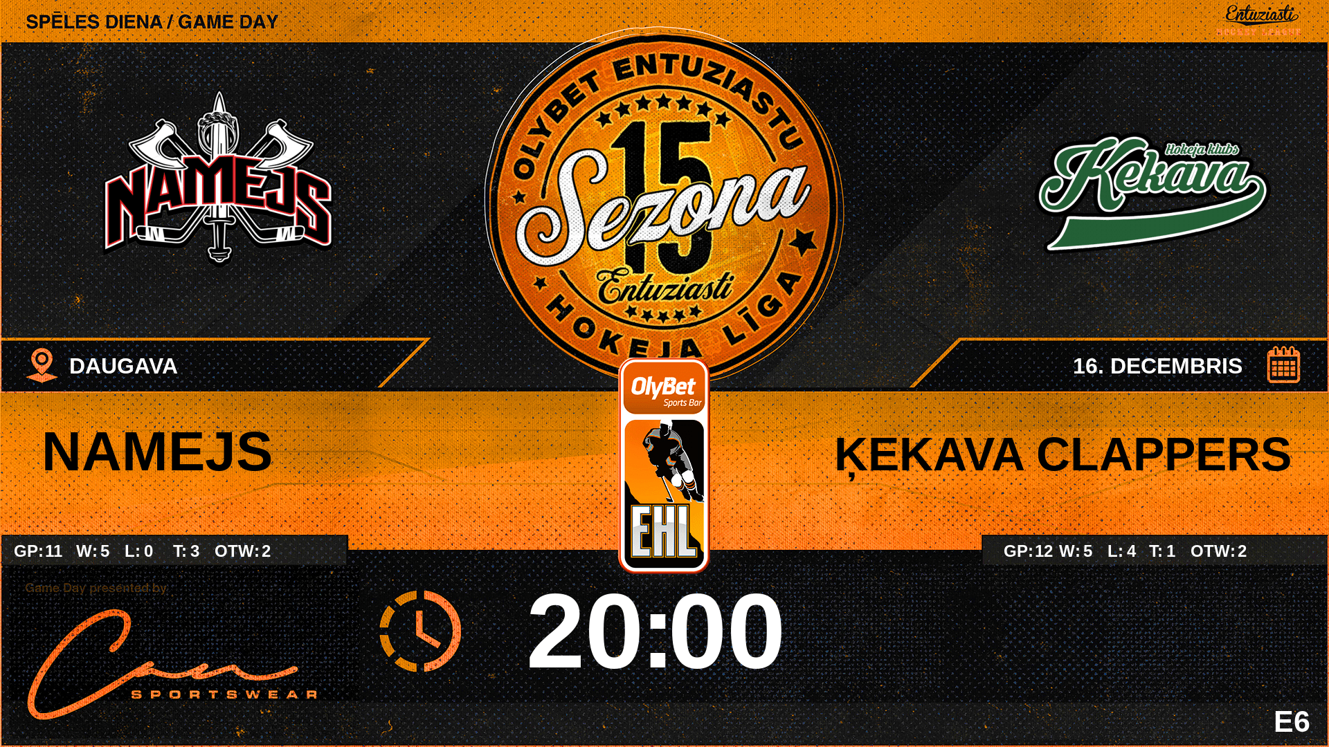 | 00:00 | ĶE2 | GK In | #2 Emīls Lielpēteris |