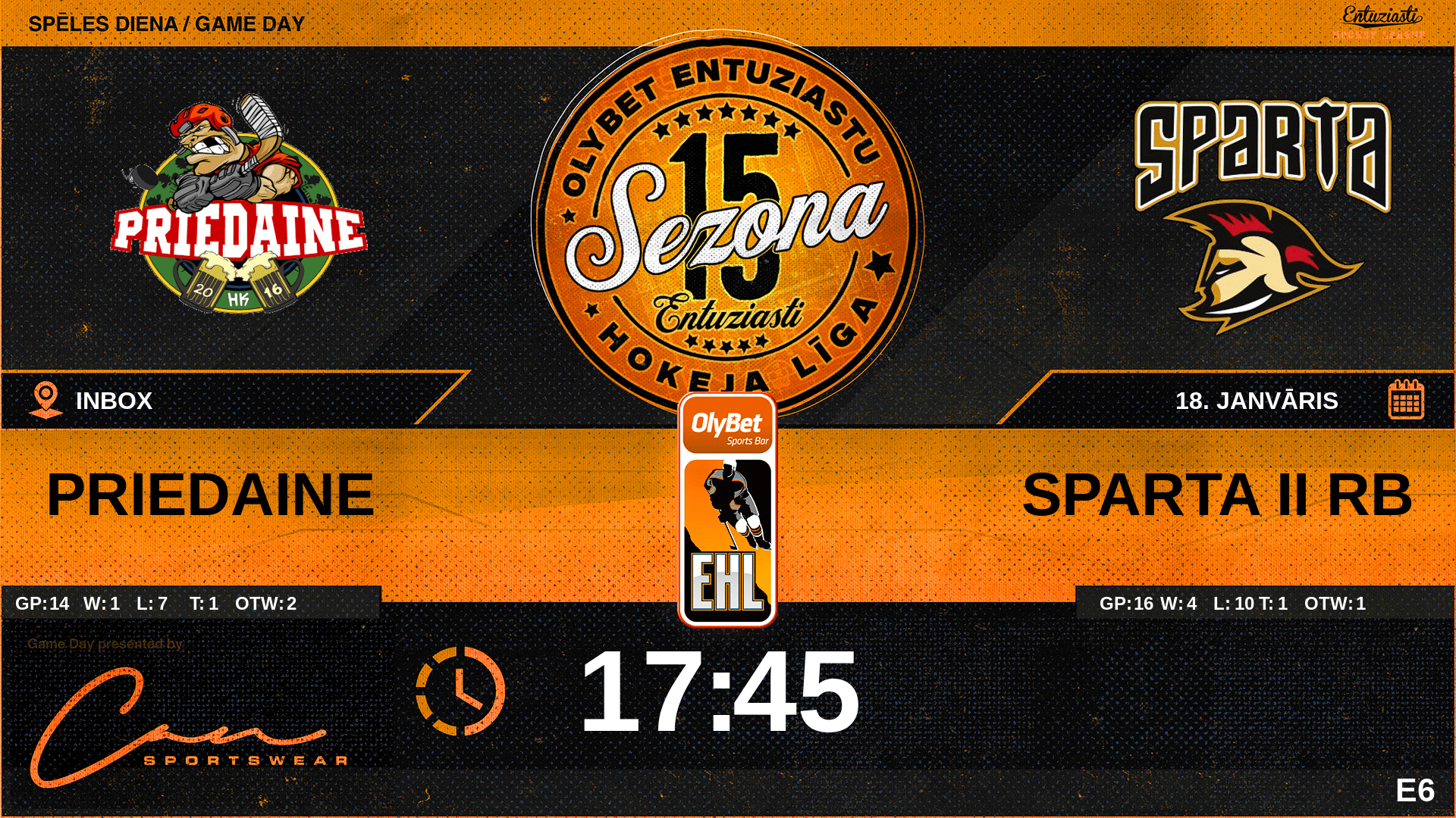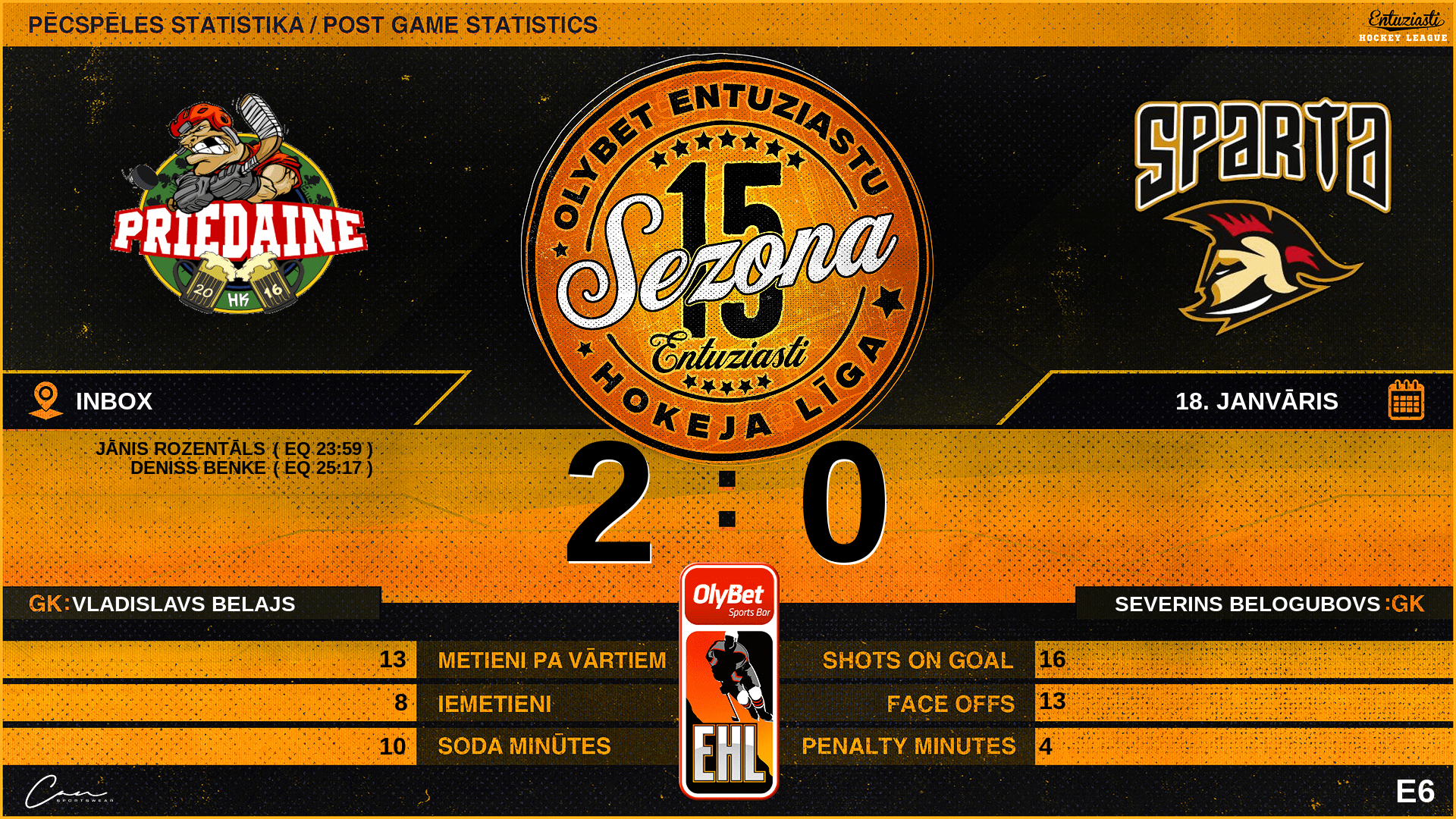 | 23:59 | PRE | Vārti (EQ) | #8 Jānis Rozentāls, piespēles: #4 Vitālijs Zahars |