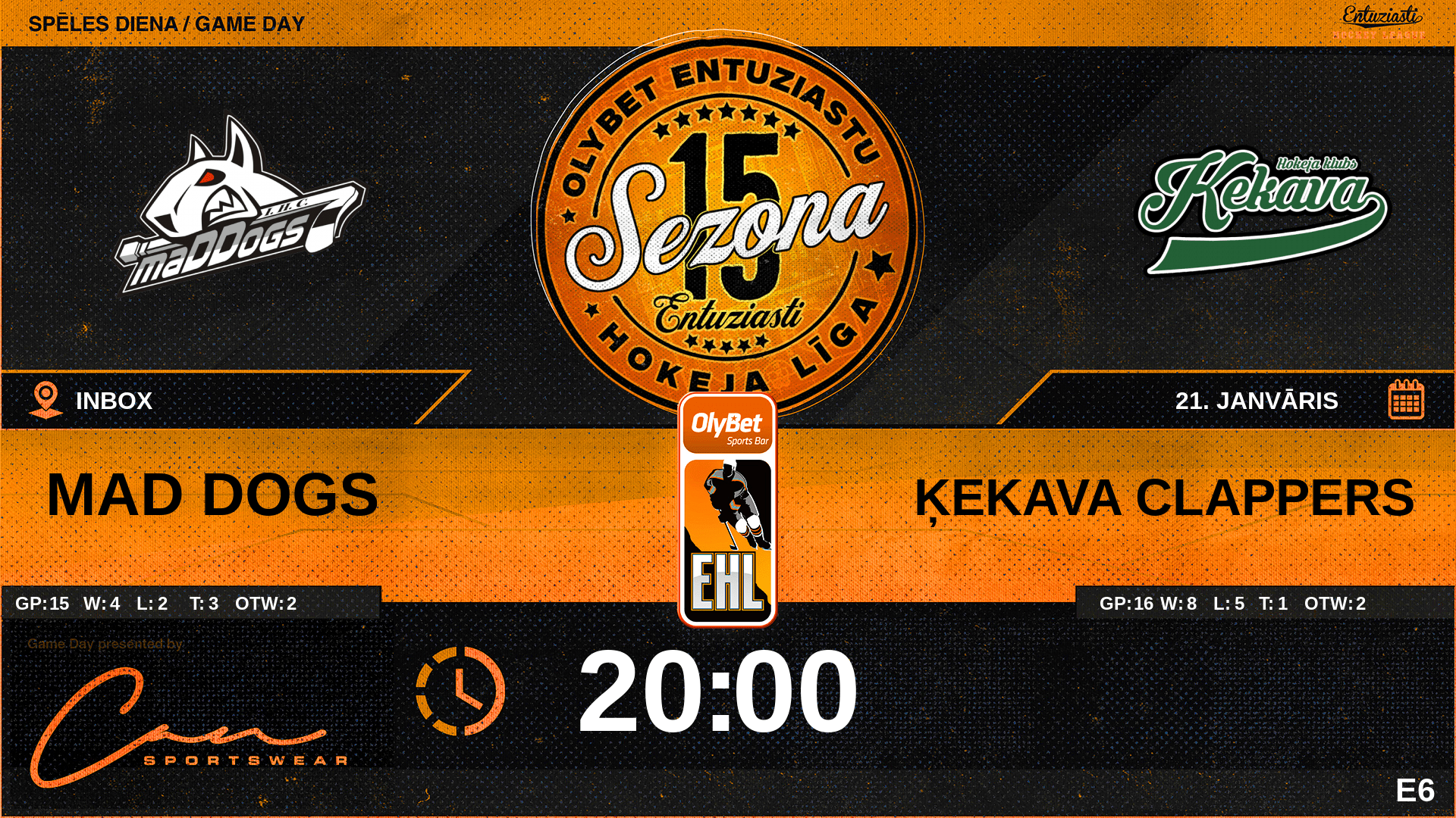 | 00:00 | ĶE2 | GK In | #2 Emīls Lielpēteris |