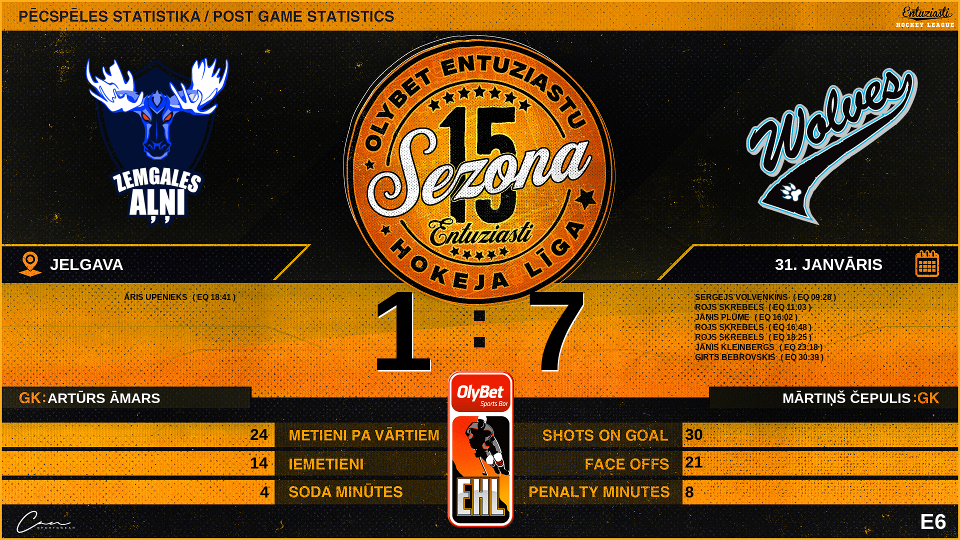 | 36:00 | WF3 | GK Out | #30 Mārtiņš Čepulis |