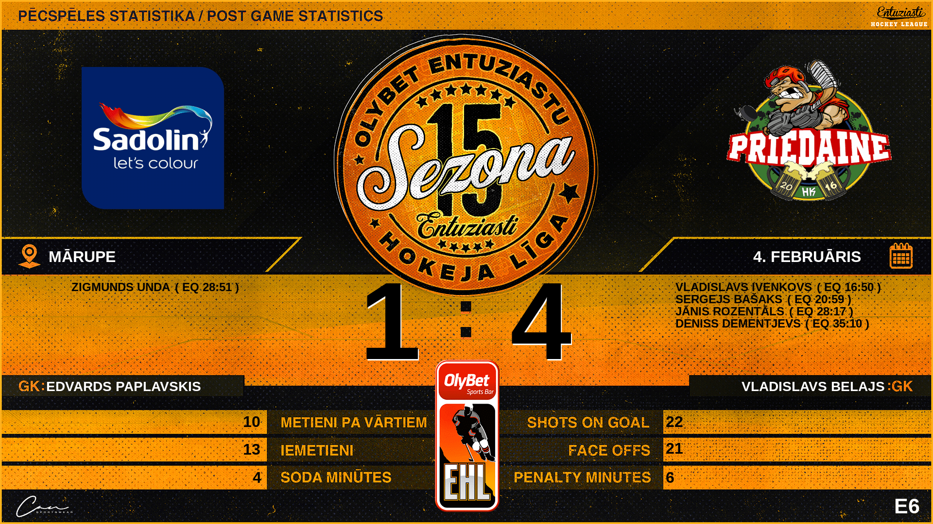 | 36:00 | SDN | GK Out | #51 Edvards Paplavskis |