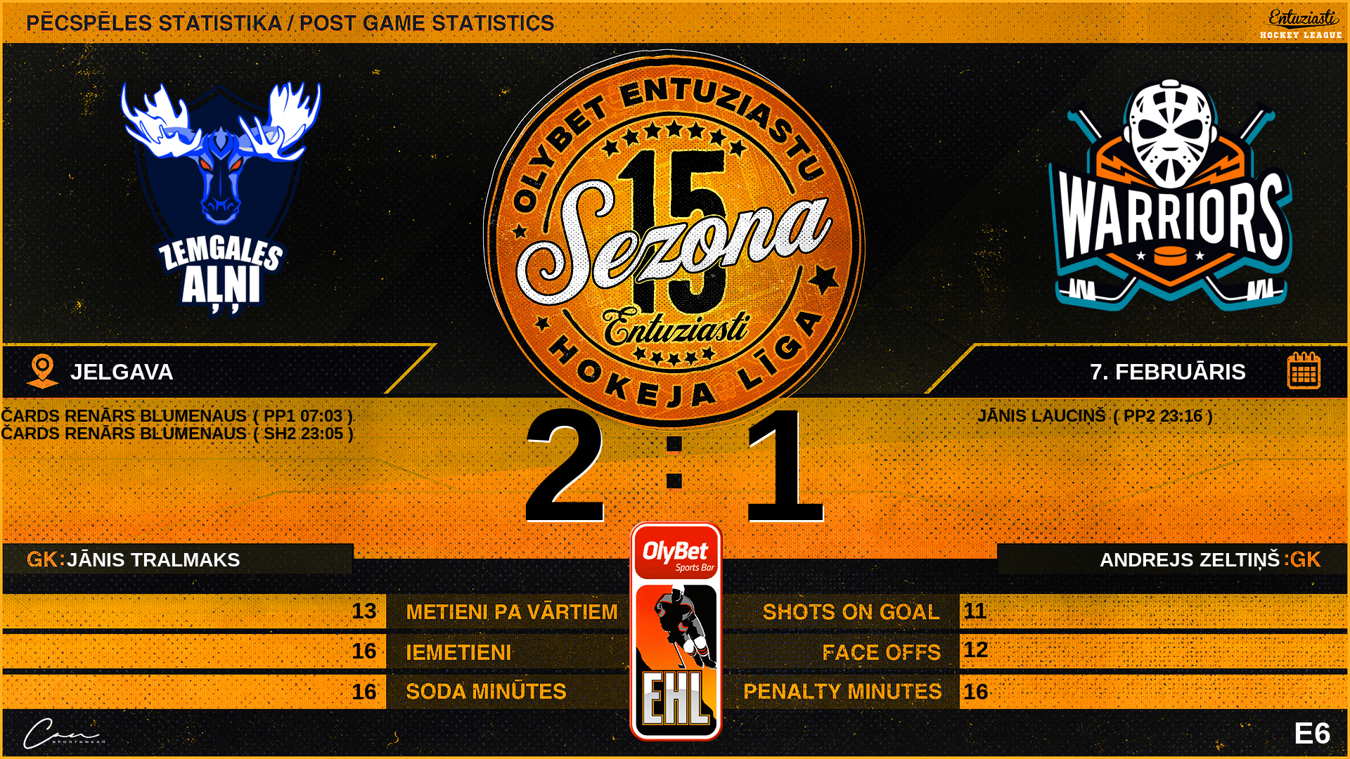 | 23:05 | ZGA | Vārti (SH2) ZGA 2 : 0 WRS | #92 Ričards Renārs Blumenaus, piespēles: #97 Raivis Zuoks, #47 Ivars Dzalbs |