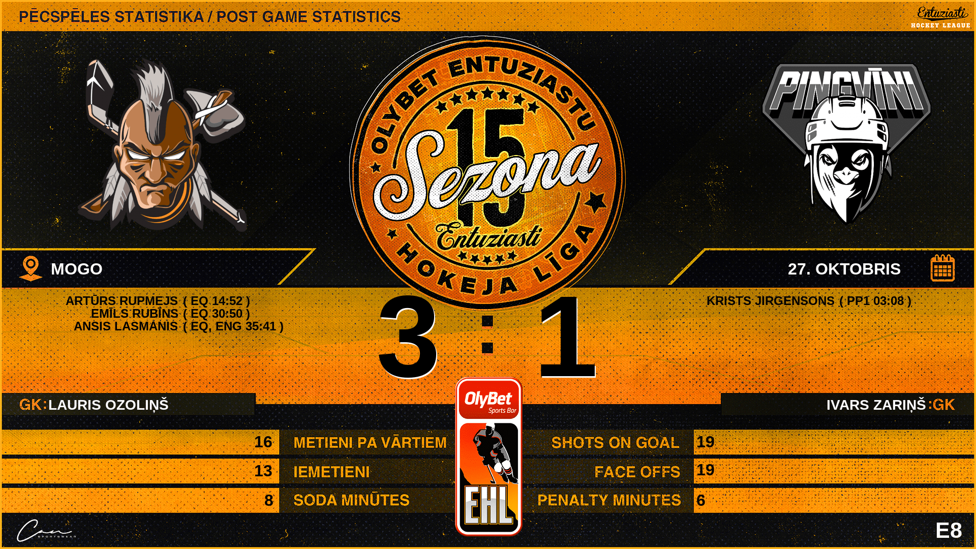 | 14:52 | MZ2 | Vārti (EQ) | #28 Artūrs Rupmejs, piespēles: #11 Matīss Matigars Ezeriņš |
