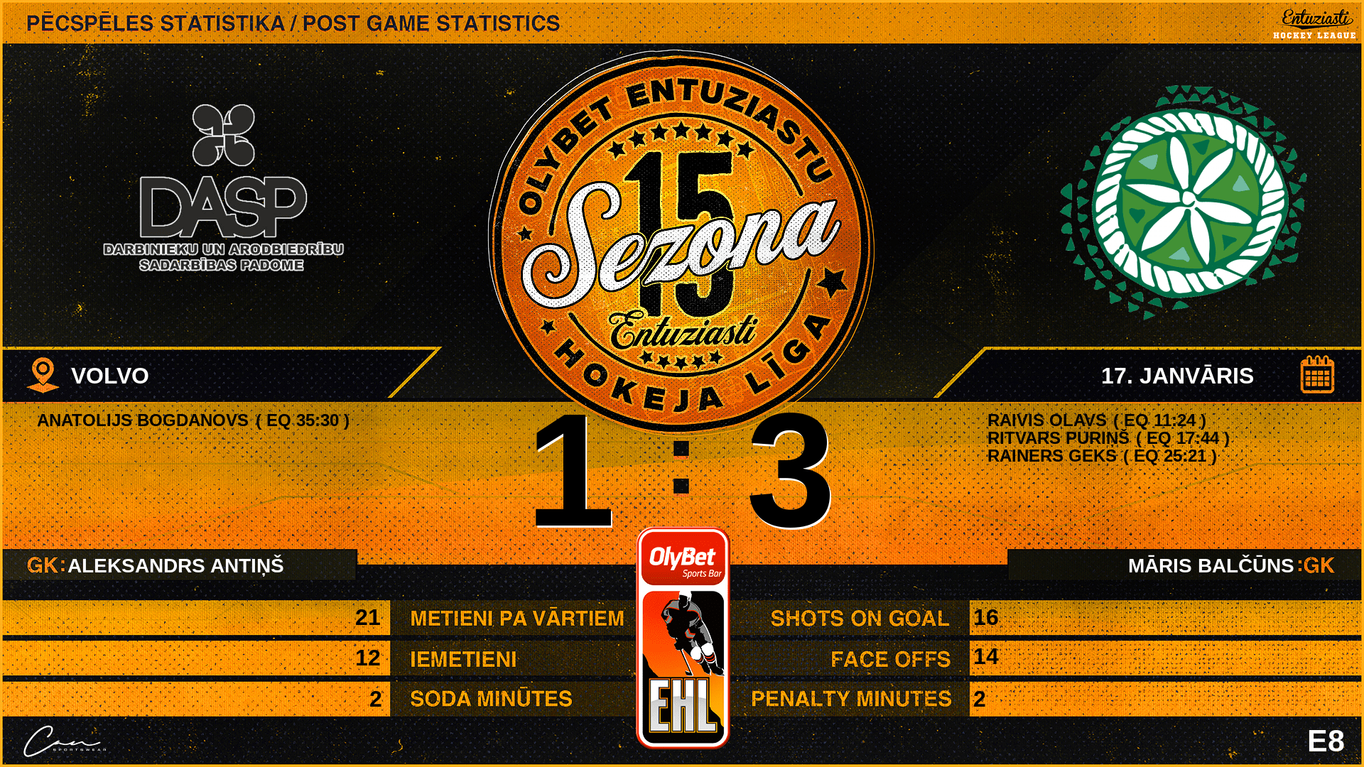 | 35:48 | DAS | GK Out | #84 Aleksandrs Antiņš |