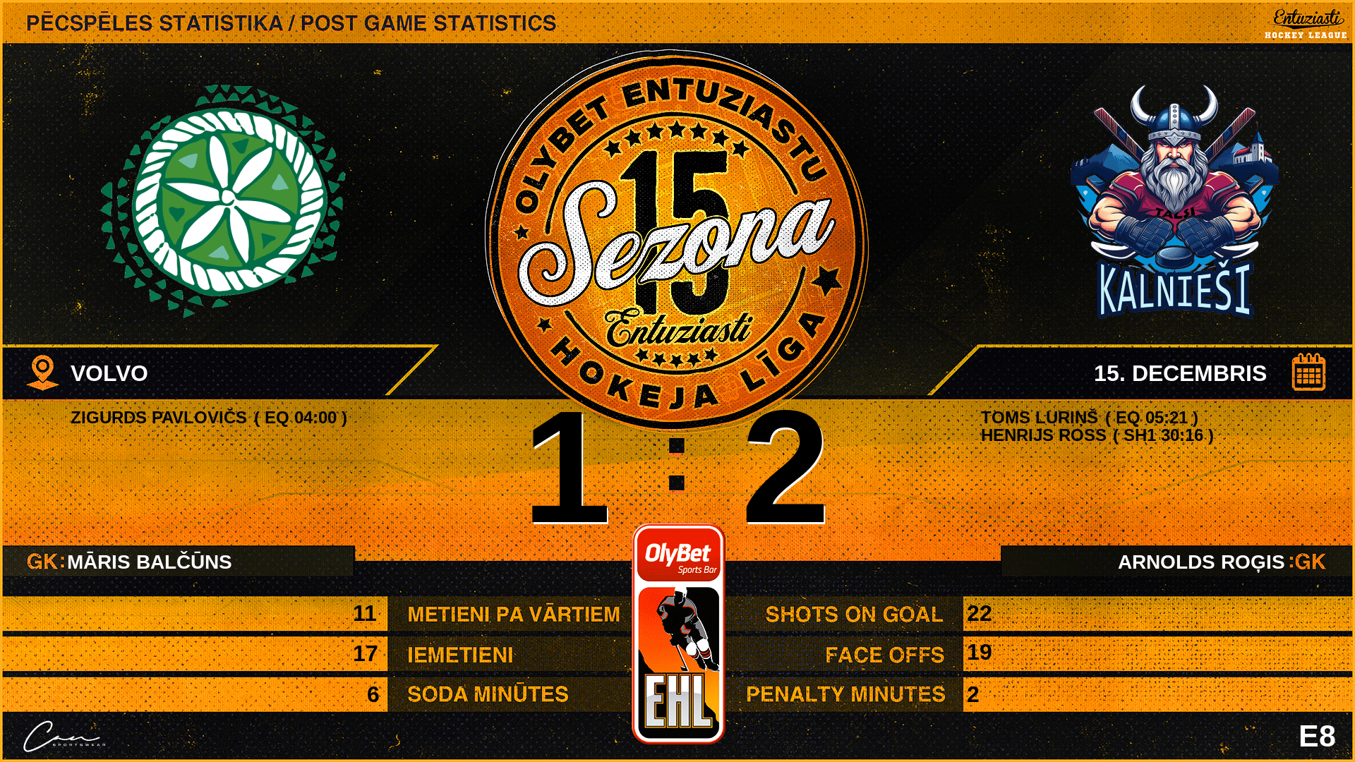 | 05:21 | KLN | Vārti (EQ) | #96 Toms Luriņš, piespēles: #97 Miks Indriksons |