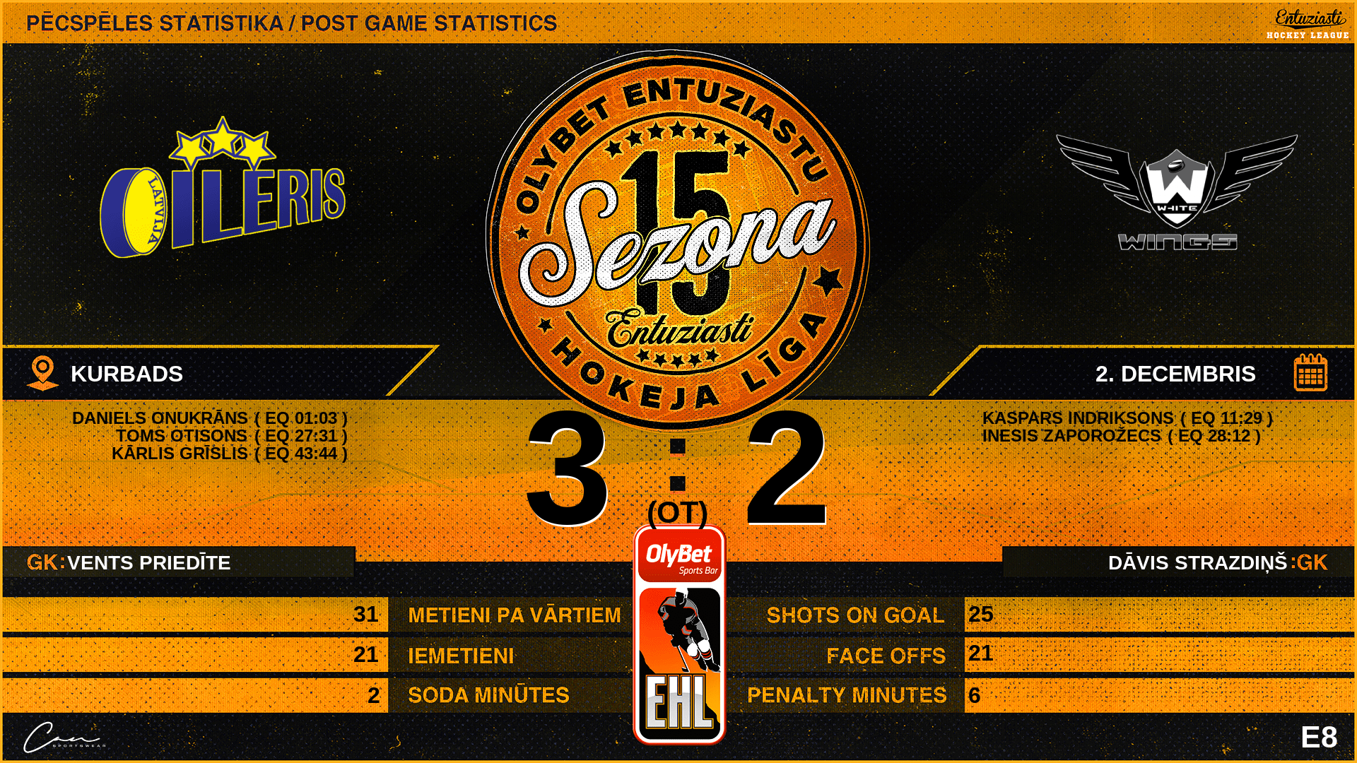 | 01:03 | OLR | Vārti (EQ) | #29 Daniels Onukrāns, piespēles: #21 Kārlis Grīslis |