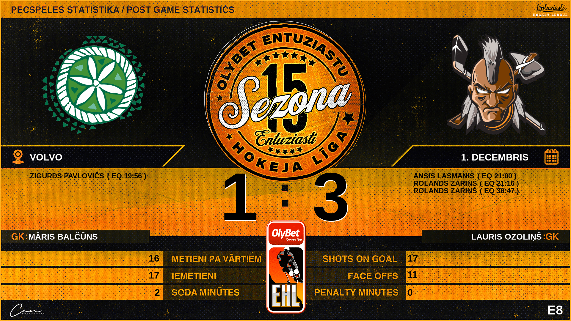 | 21:00 | MZ2 | Vārti (EQ) | #19 Ansis Lasmanis, piespēles: #4 Sandis Nīlenders-Neilanders, #10 Raitis Kalniņš |