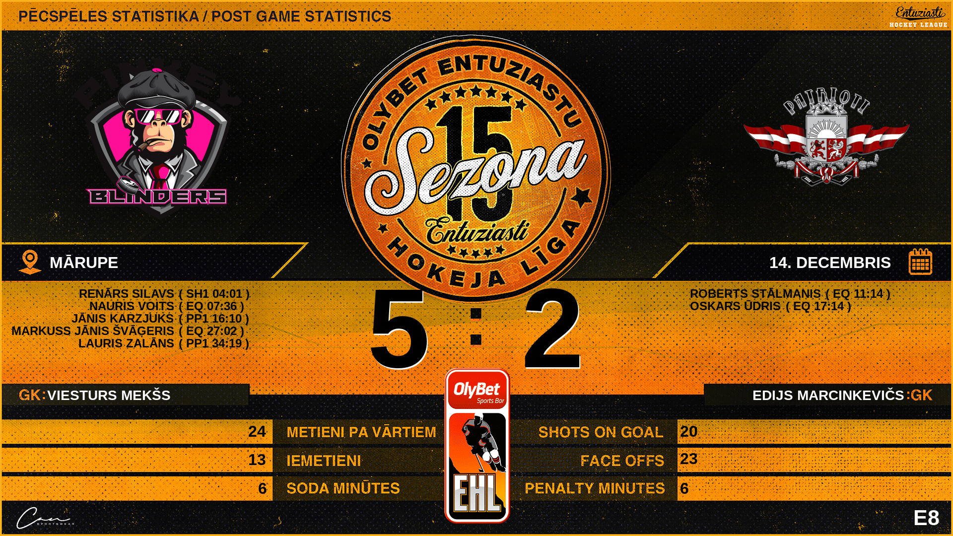 | 17:14 | PT2 | Vārti (EQ) | #34 Oskars Ūdris |