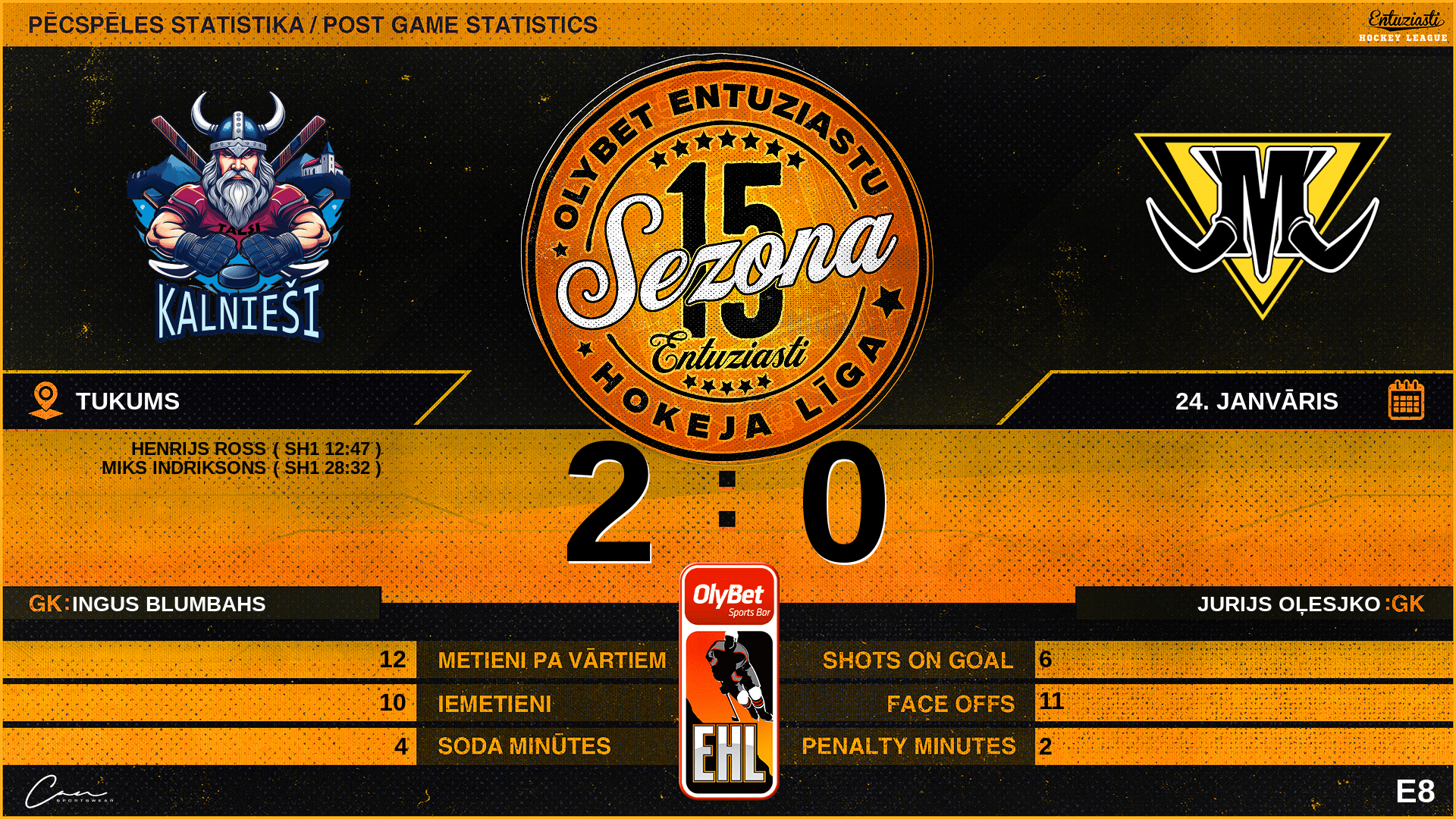 | 12:47 | KLN | Vārti (SH1) KLN 1 : 0 MT2 | #74 Henrijs Ross |