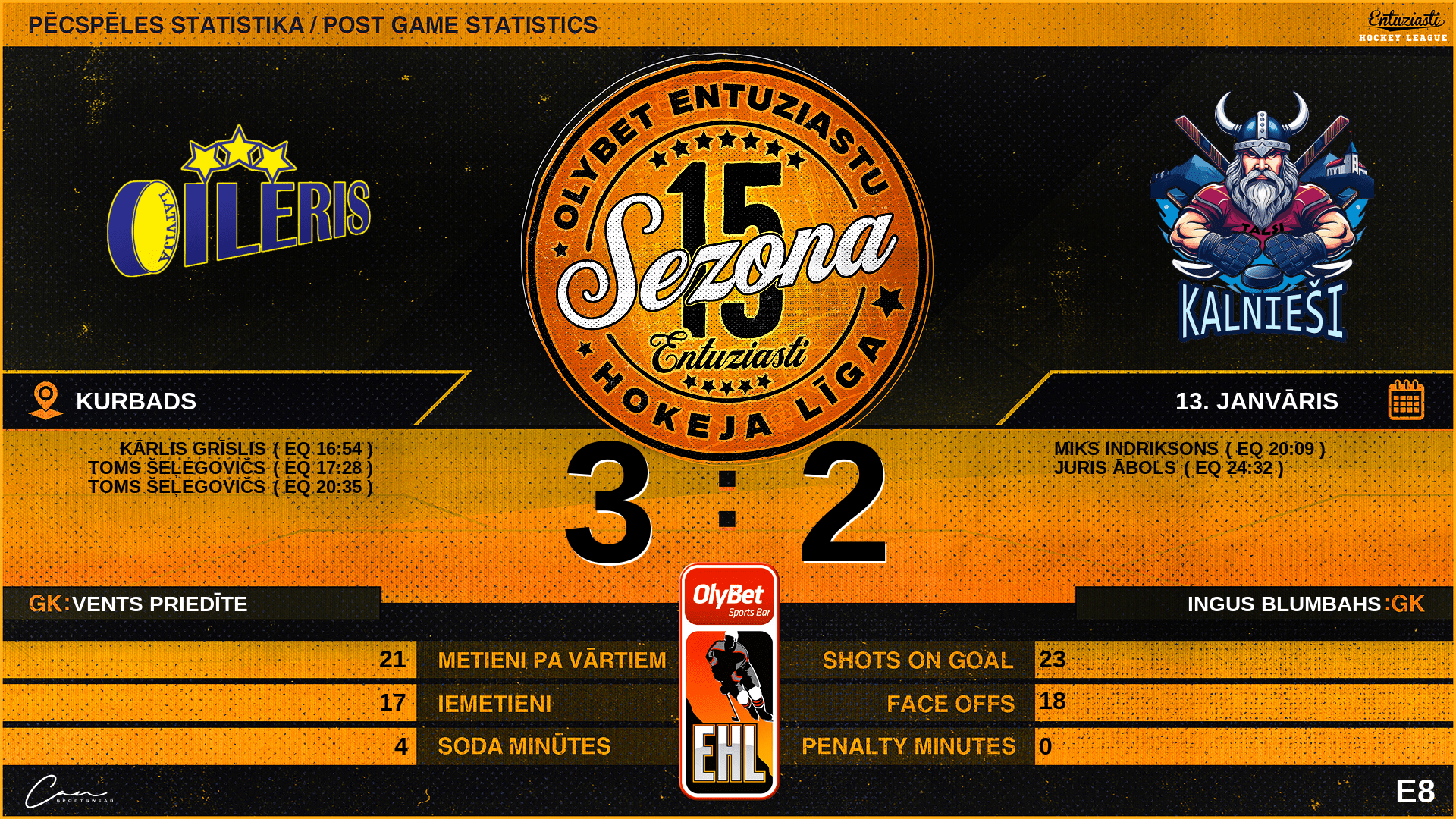 | 20:35 | OLR | Vārti (EQ) | #35 Toms Šeļegovičs |