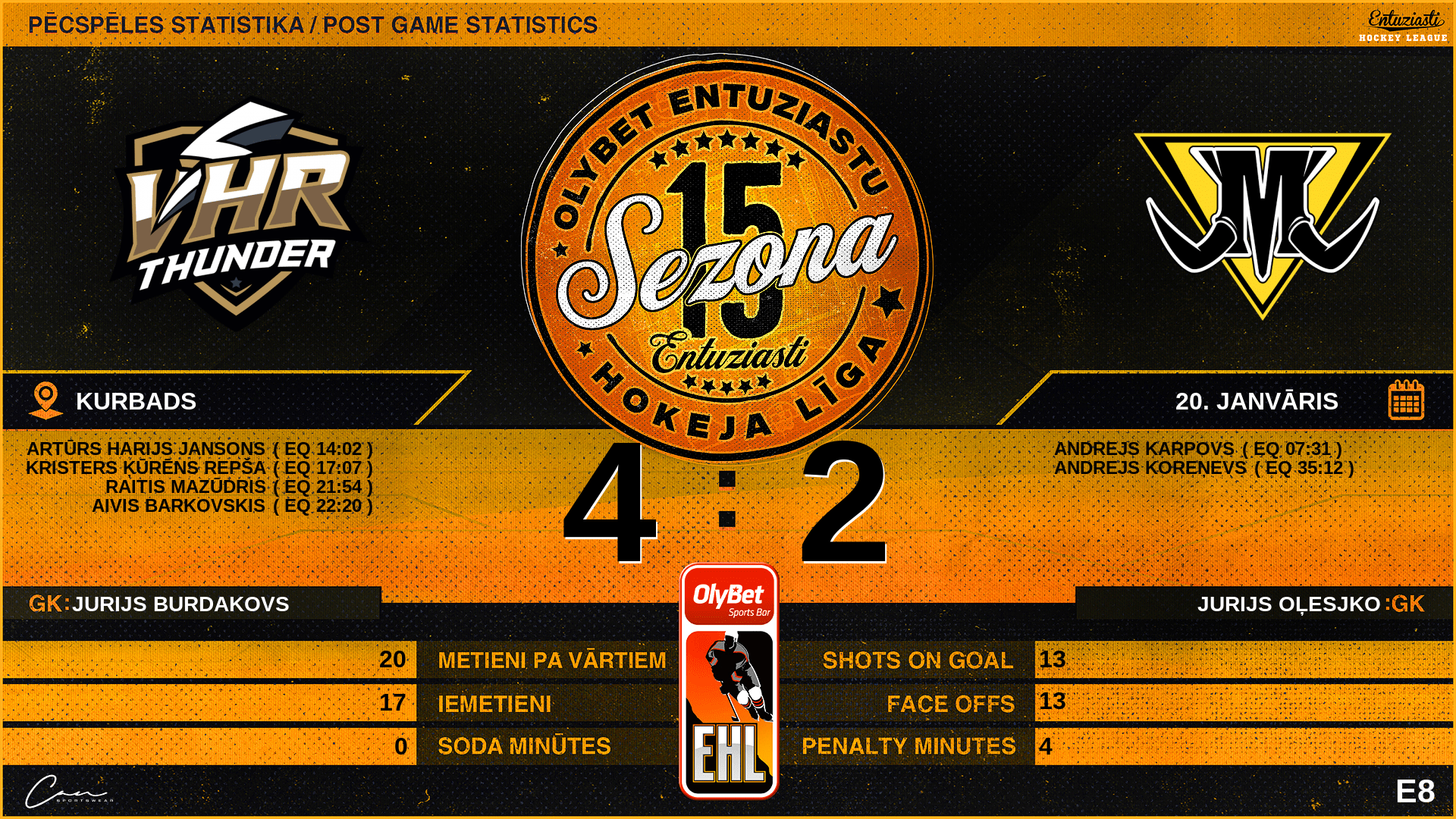 | 36:00 | VHR | GK Out | #1 Jurijs Burdakovs |