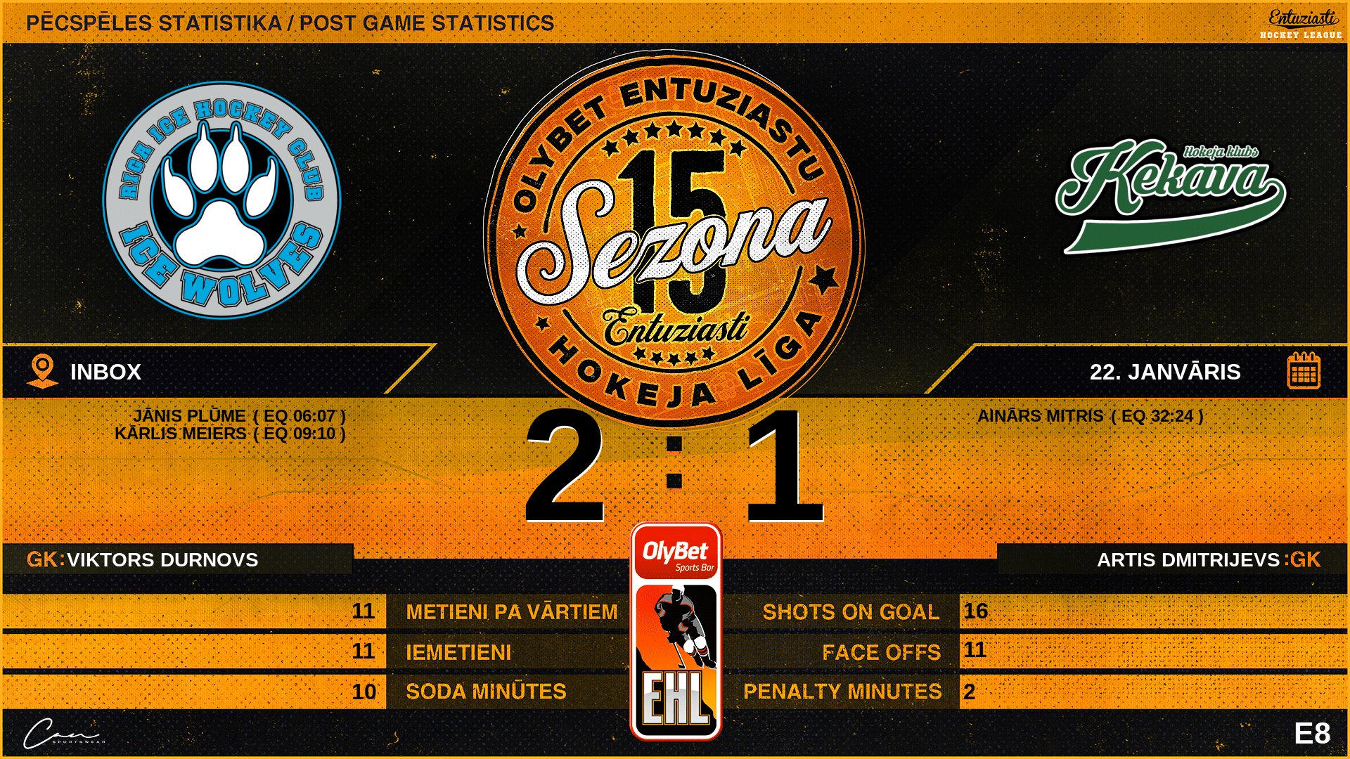 | 09:10 | WF5 | Vārti (EQ) WF5 2 : 0 ĶK4 | #85 Kārlis Meiers, piespēles: #91 Vitālijs Naļivaiko, #71 Vadims Jurkovs |