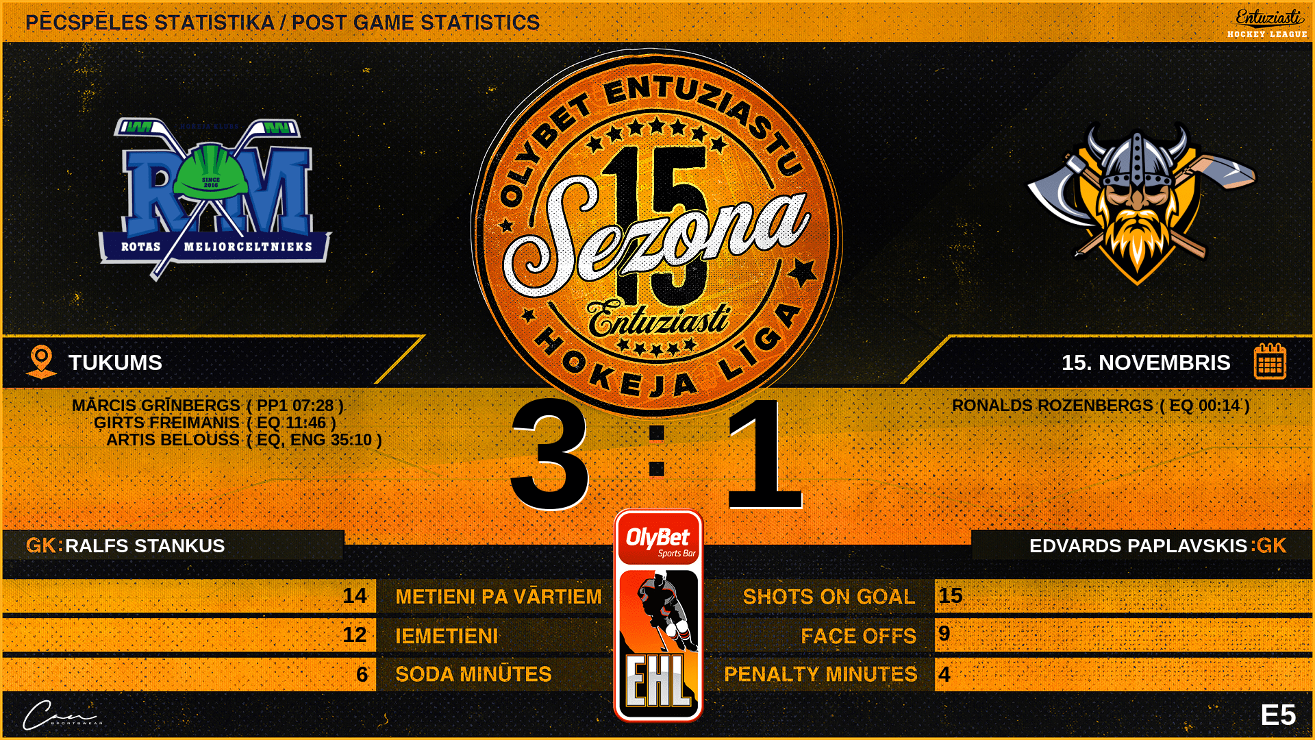 | 11:46 | RTS | Vārti (EQ) | #13 Ģirts Freimanis, piespēles: #92 Sandris Būmeisters |