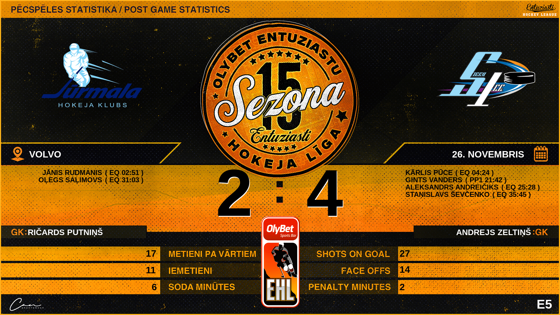 | 36:00 | STV | GK Out | #1 Andrejs Zeltiņš |