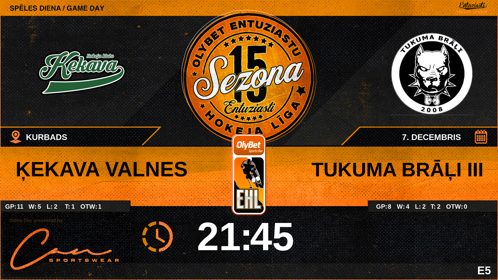 | 08:15 | TB3 | Vārti (EQ) | #2 Markuss Vīksna |