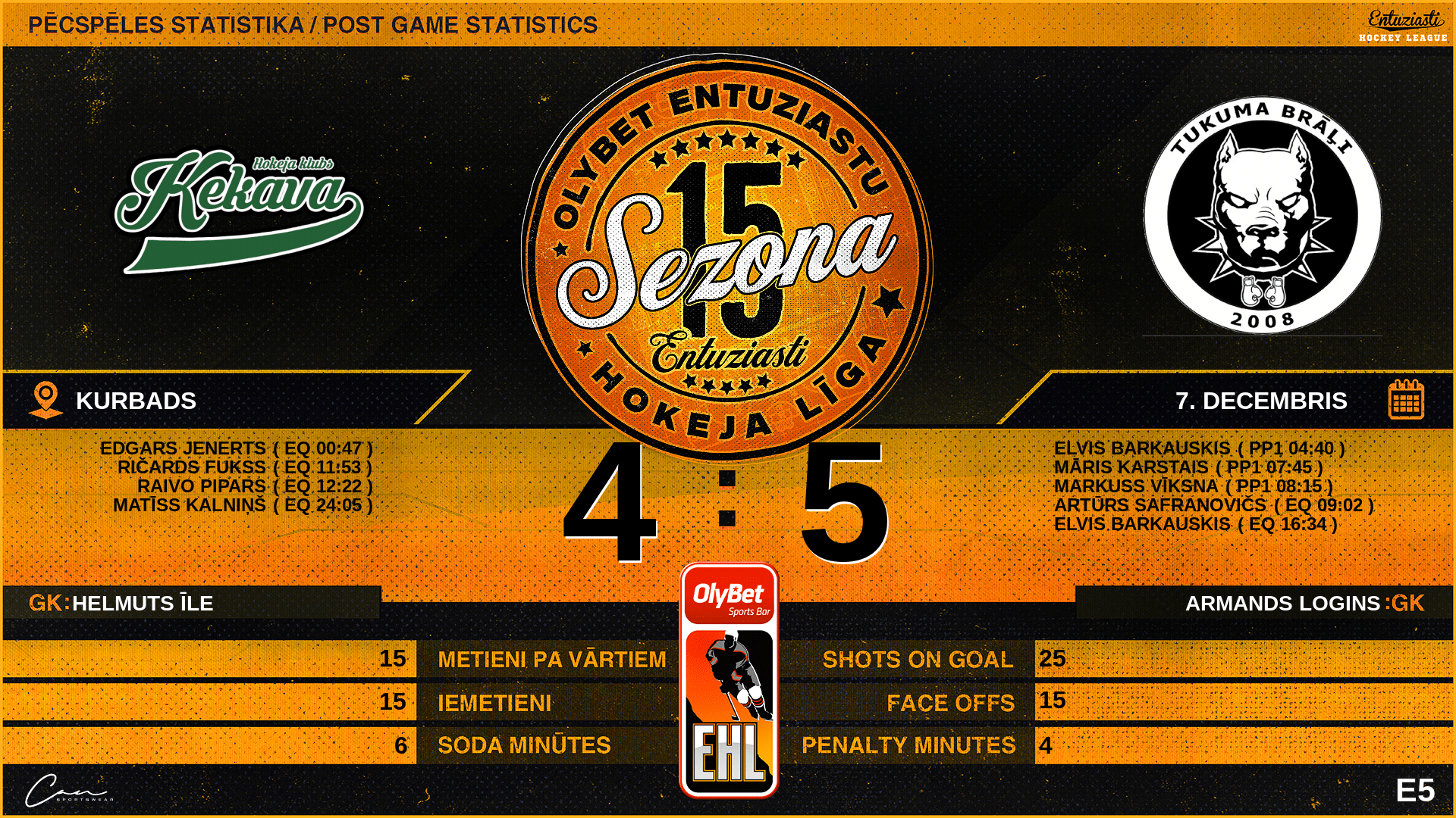 | 07:45 | TB3 | Vārti (PP1) | #22 Māris Karstais, piespēles: #13 Krišs Āls |