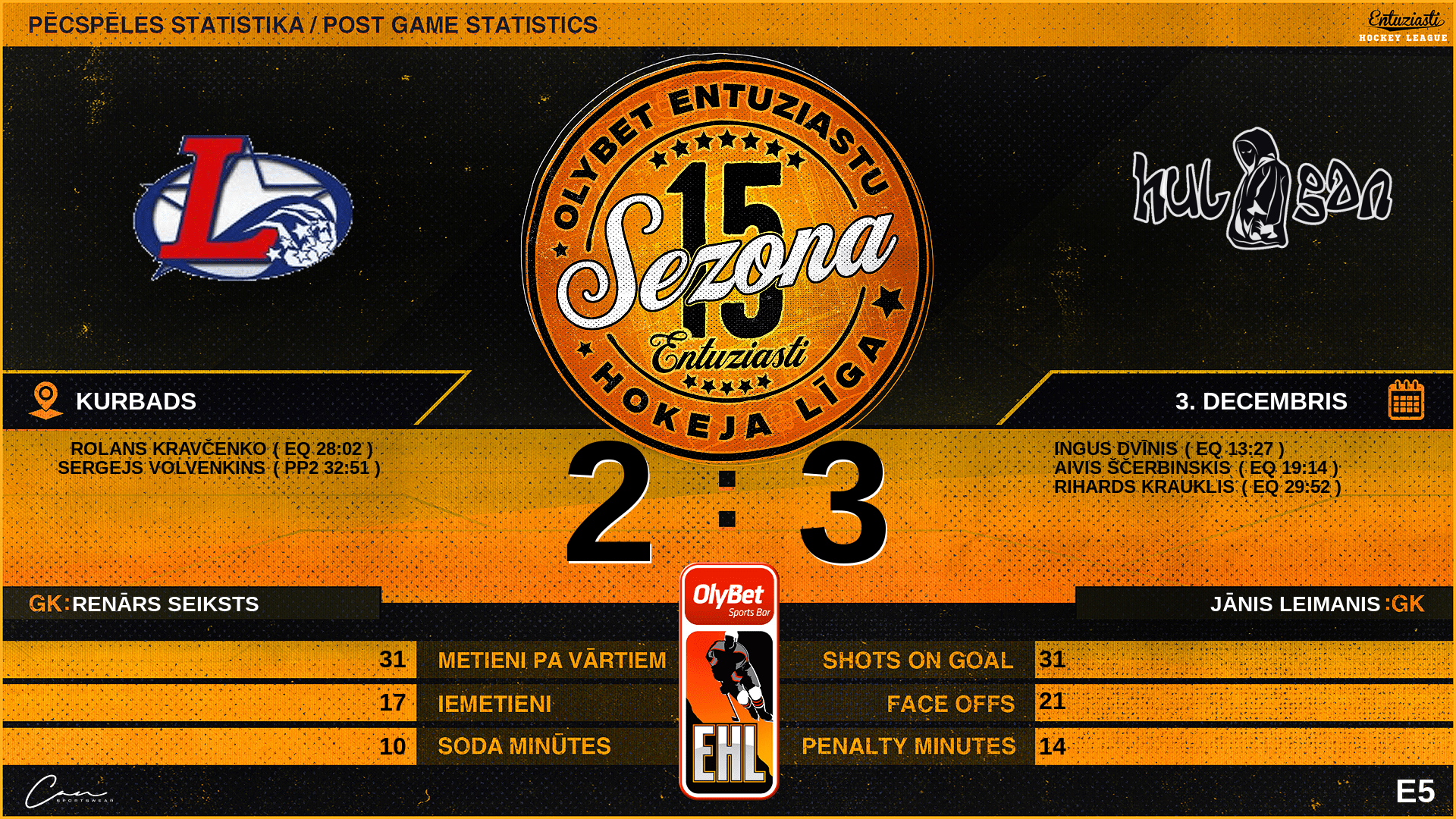 | 29:52 | HLG | Vārti (EQ) | #90 Rihards Krauklis |