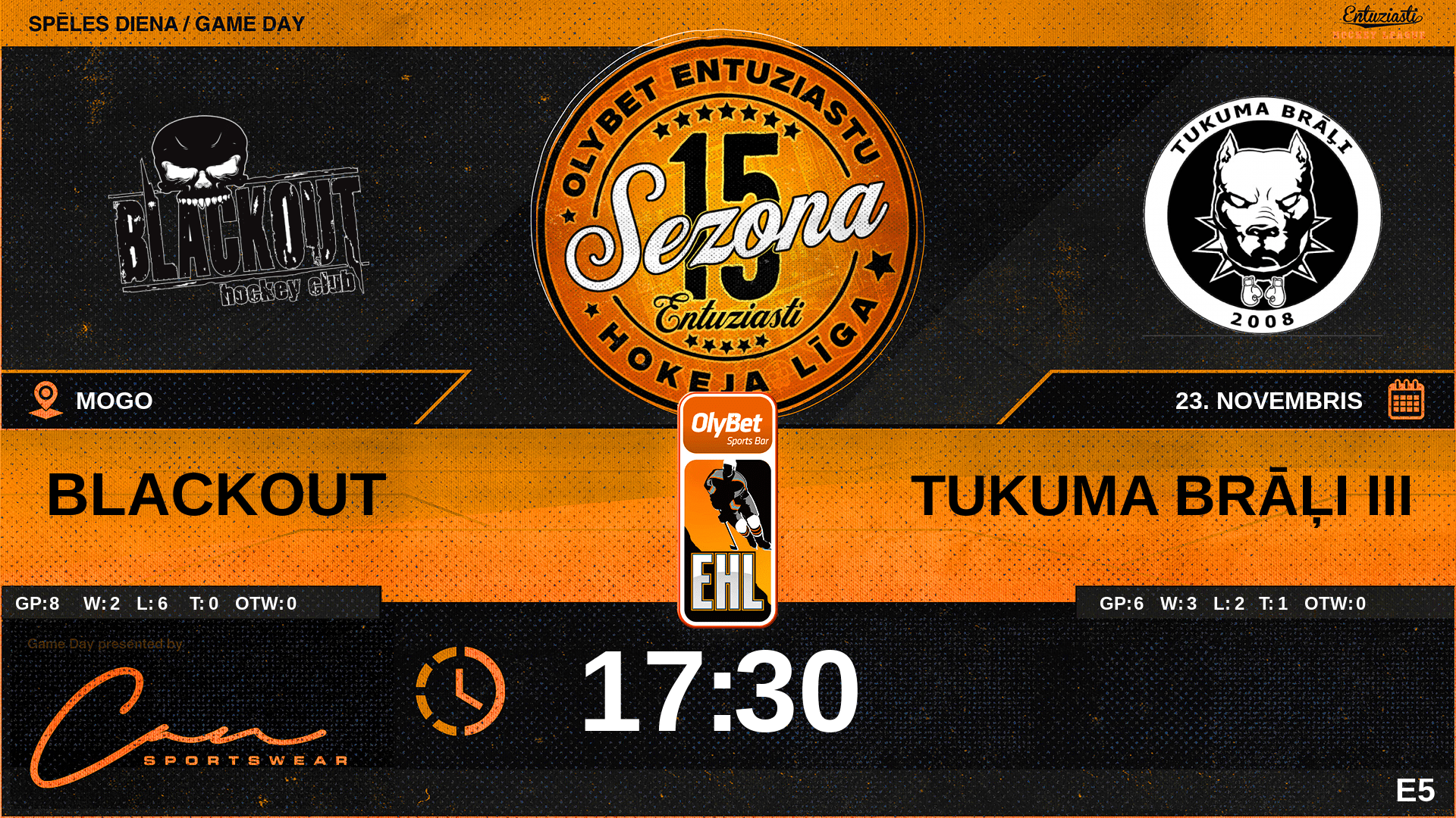 | 17:05 | TB3 | Vārti (EQ) | #3 Elvis Barkauskis |