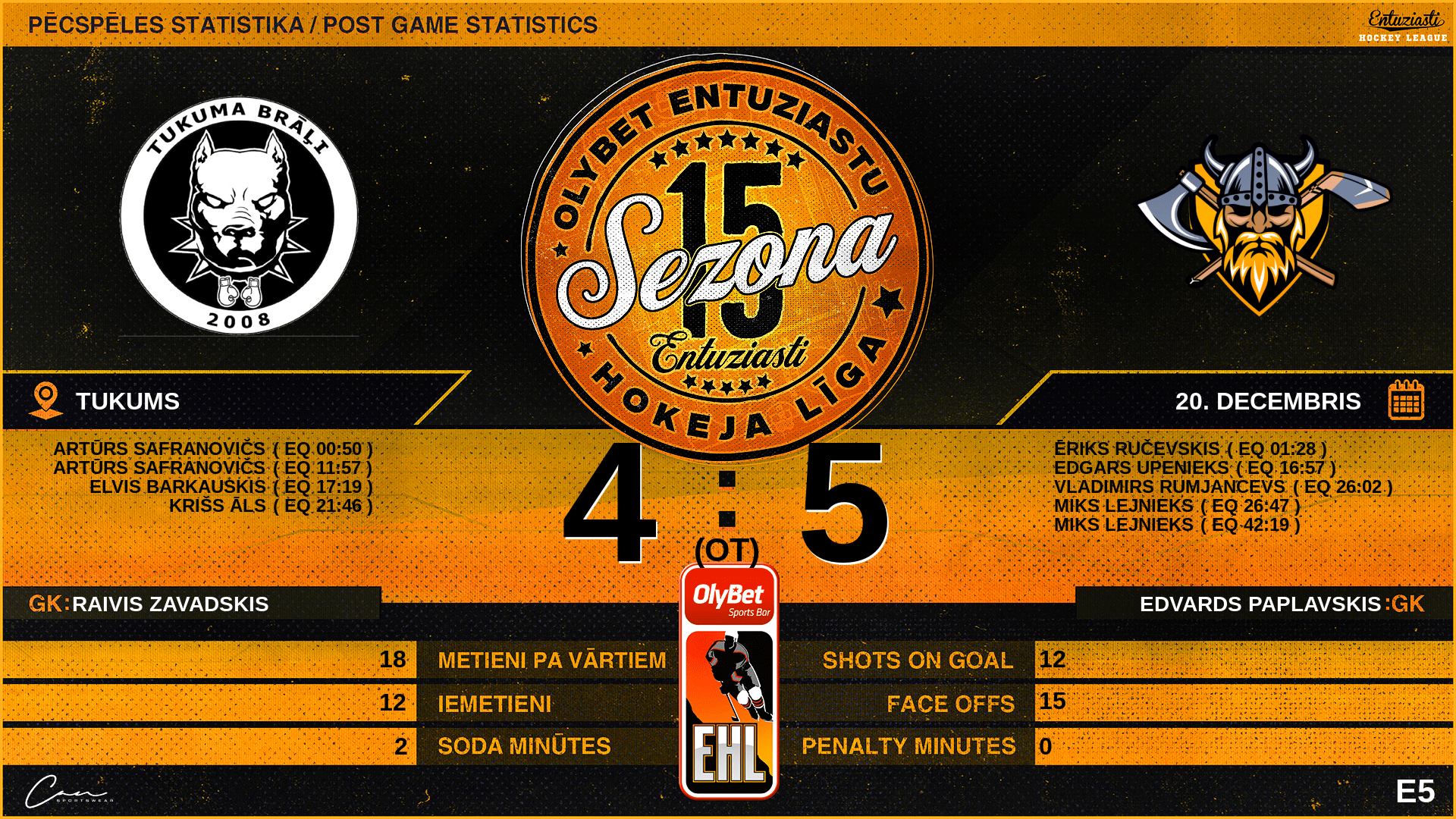 | 17:19 | TB3 | Vārti (EQ) | #74 Elvis Barkauskis, piespēles: #24 Jānis Grands |