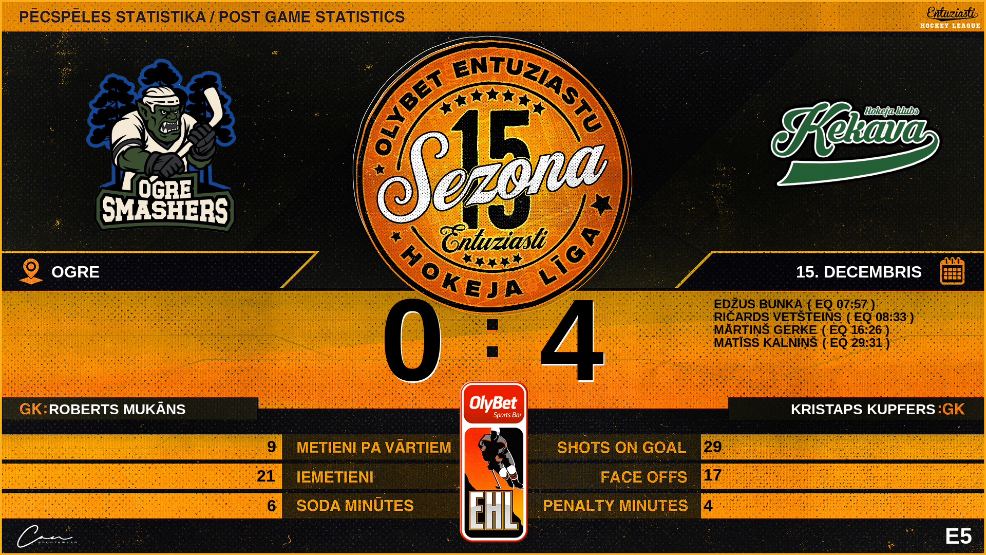 | 08:33 | ĶK1 | Vārti (EQ) | #77 Ričards Vetšteins, piespēles: #17 Edgars Ķuze, #20 Edgars Jenerts |