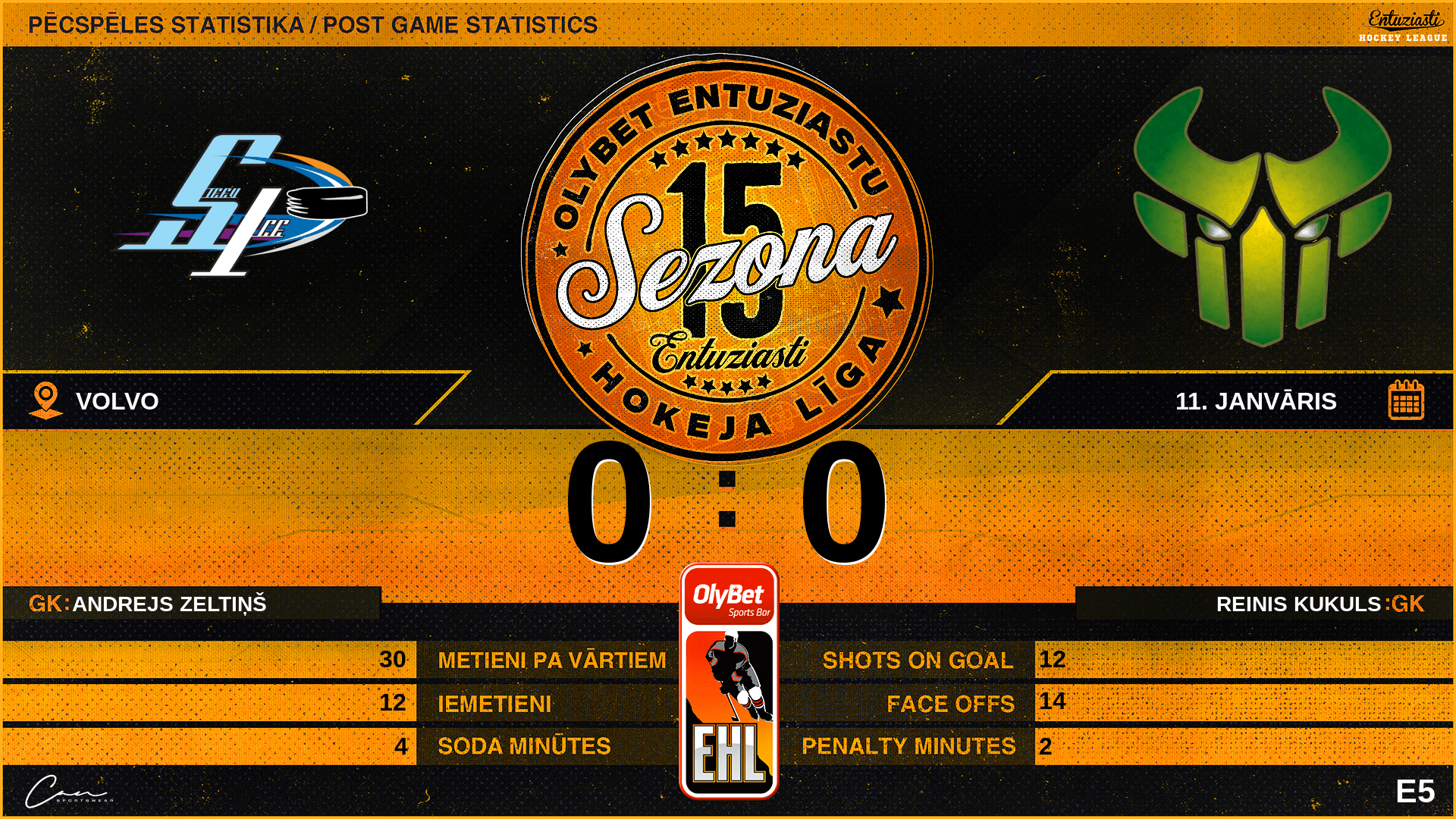 | 43:24 | STV | GK Out | #1 Andrejs Zeltiņš |