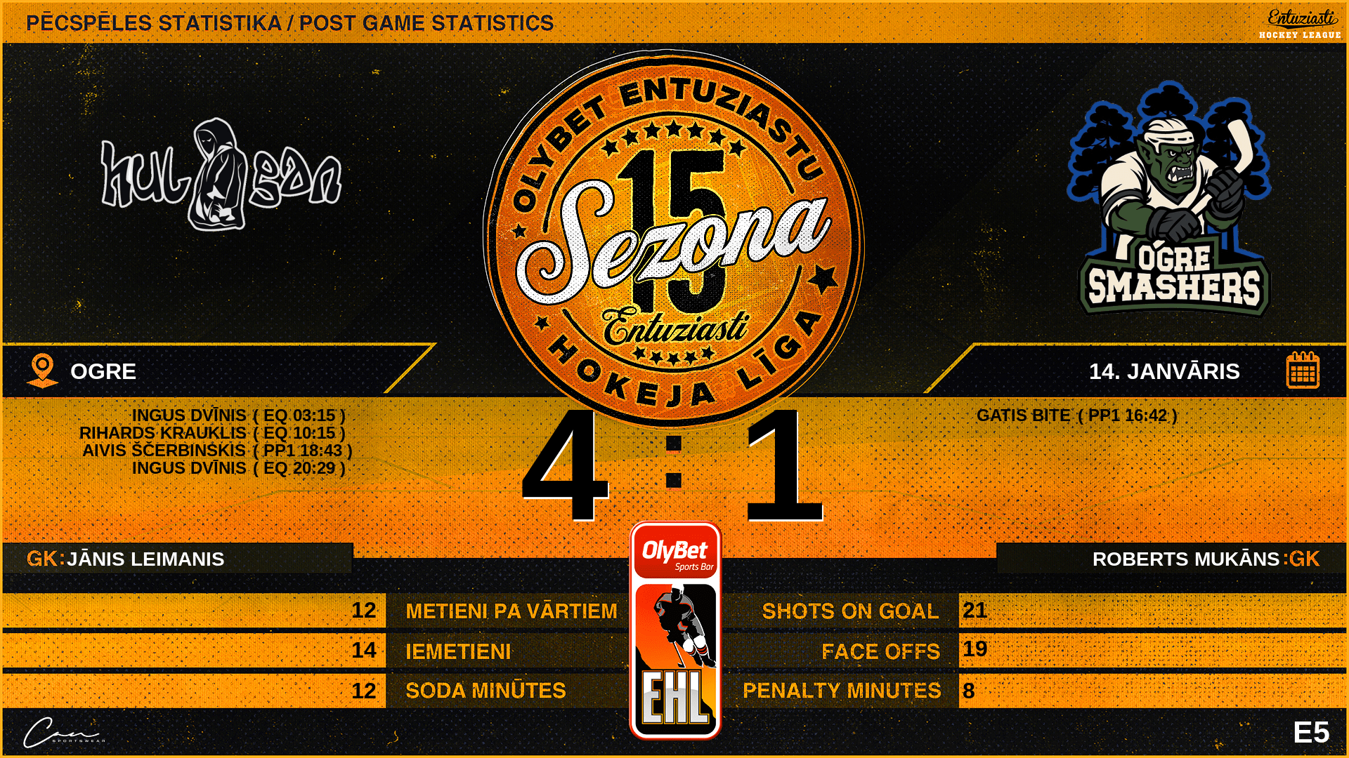 | 03:15 | HLG | Vārti (EQ) | #3 Ingus Dvīnis, piespēles: #10 Vilis Dvīnis |