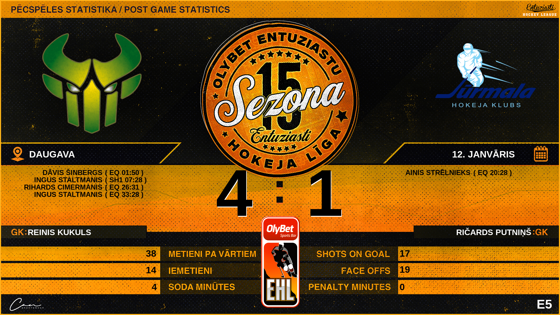 | 00:00 | JUR | GK In | #31 Ričards Putniņš |