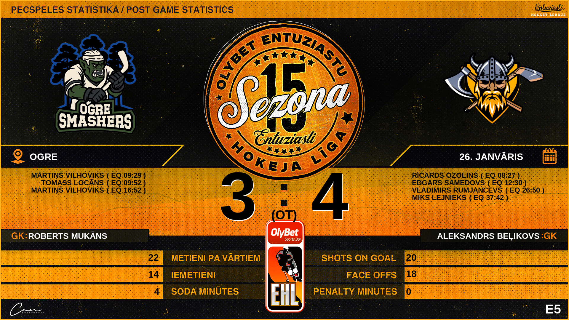 | 16:52 | SMH | Vārti (EQ) SMH 3 : 2 VKG | #3 Mārtiņš Vilhoviks, piespēles: #4 Markuss Šmats, #77 Gatis Bite |