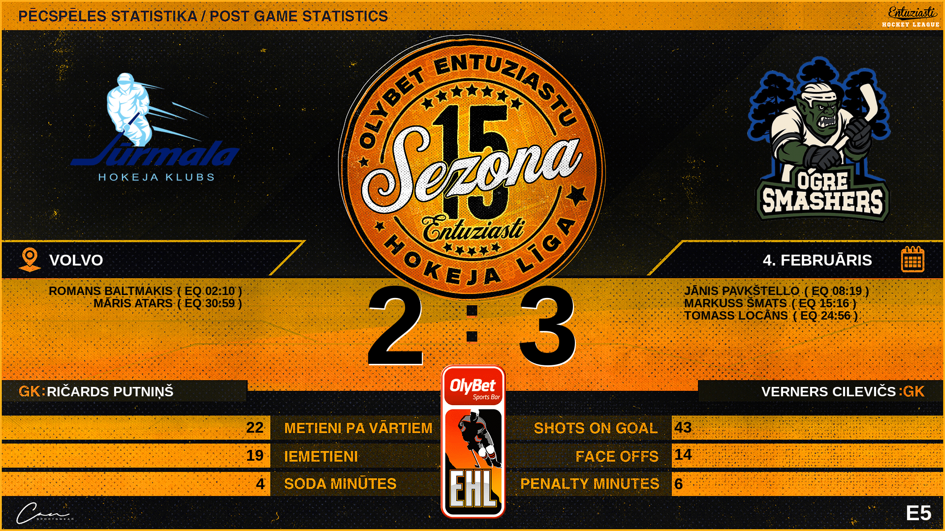 | 15:16 | SMH | Vārti (EQ) | #4 Markuss Šmats |