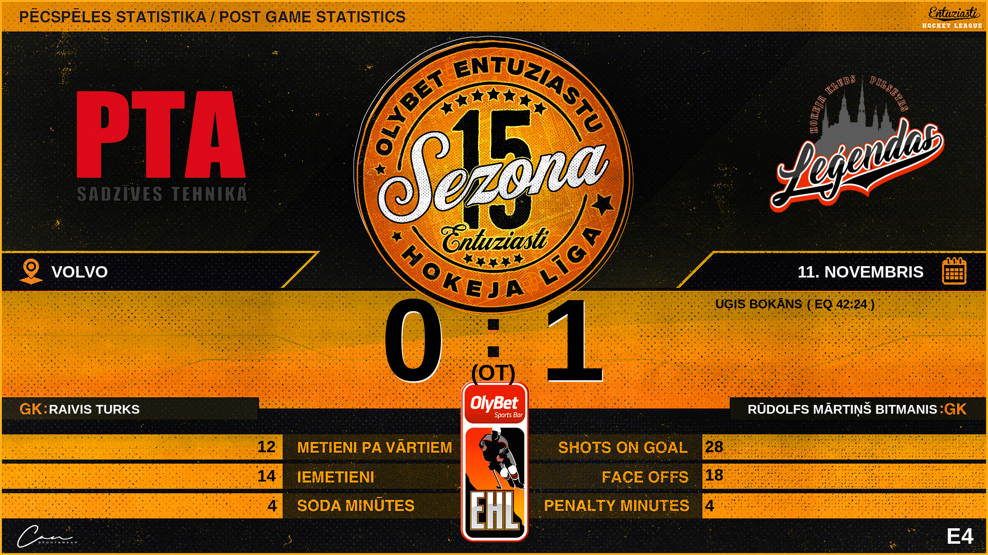 | 42:24 | PLG | Vārti (EQ) | #36 Uģis Bokāns, piespēles: #8 Edgars Slīpais |