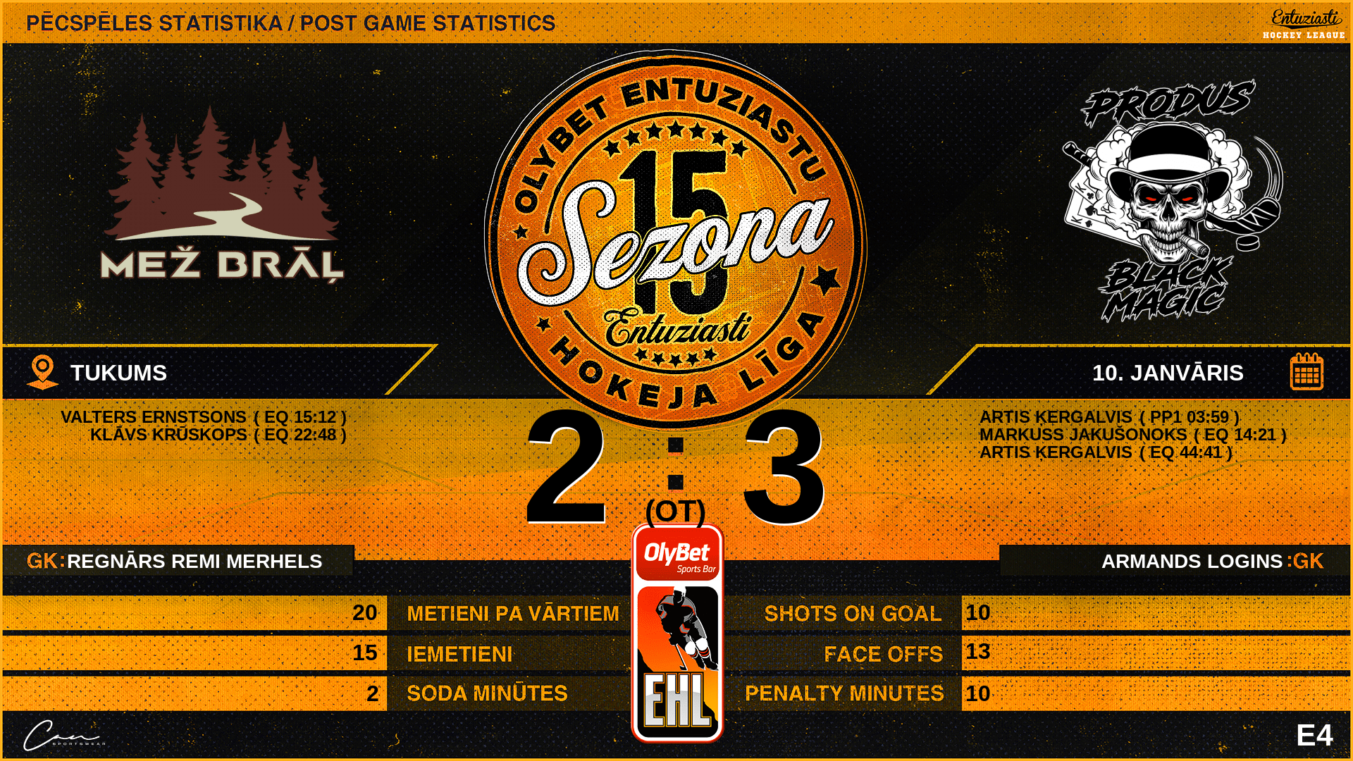 | 22:48 | MZB | Vārti (EQ) | #11 Klāvs Krūskops, piespēles: #2 Valters Ernstsons |