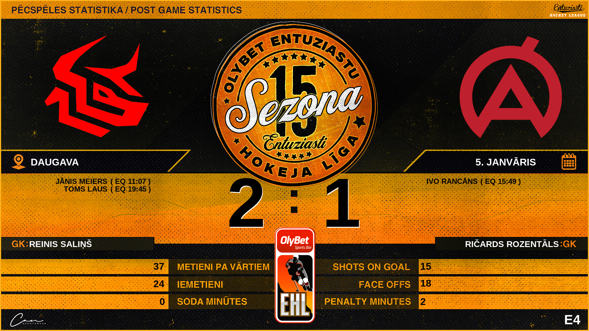 | 15:49 | ATA | Vārti (EQ) | #11 Ivo Rancāns, piespēles: #8 Uvis Norde, #19 Bruno Langemanis |