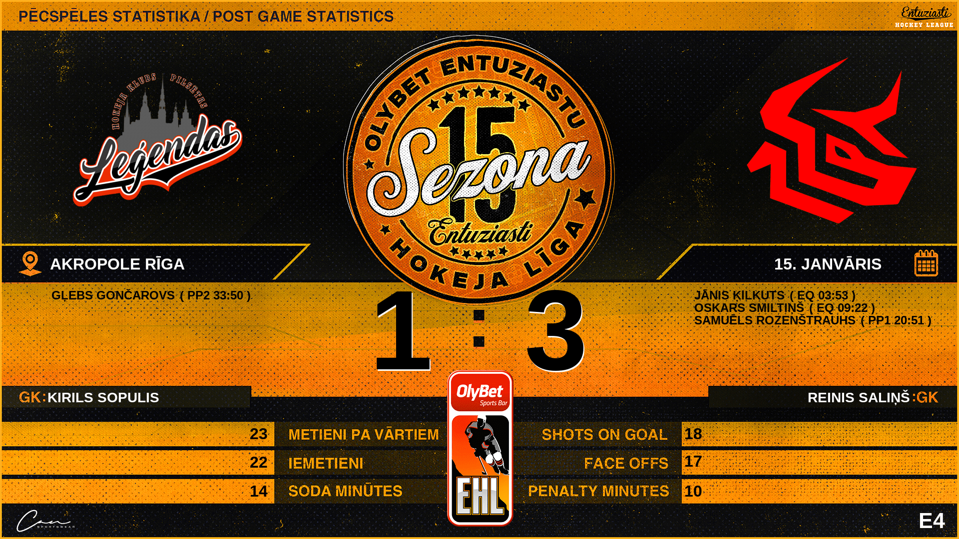 | 19:03 | PLG | Noraidījums | #96 Jurijs Gončarovs - Roughing (2 min) |