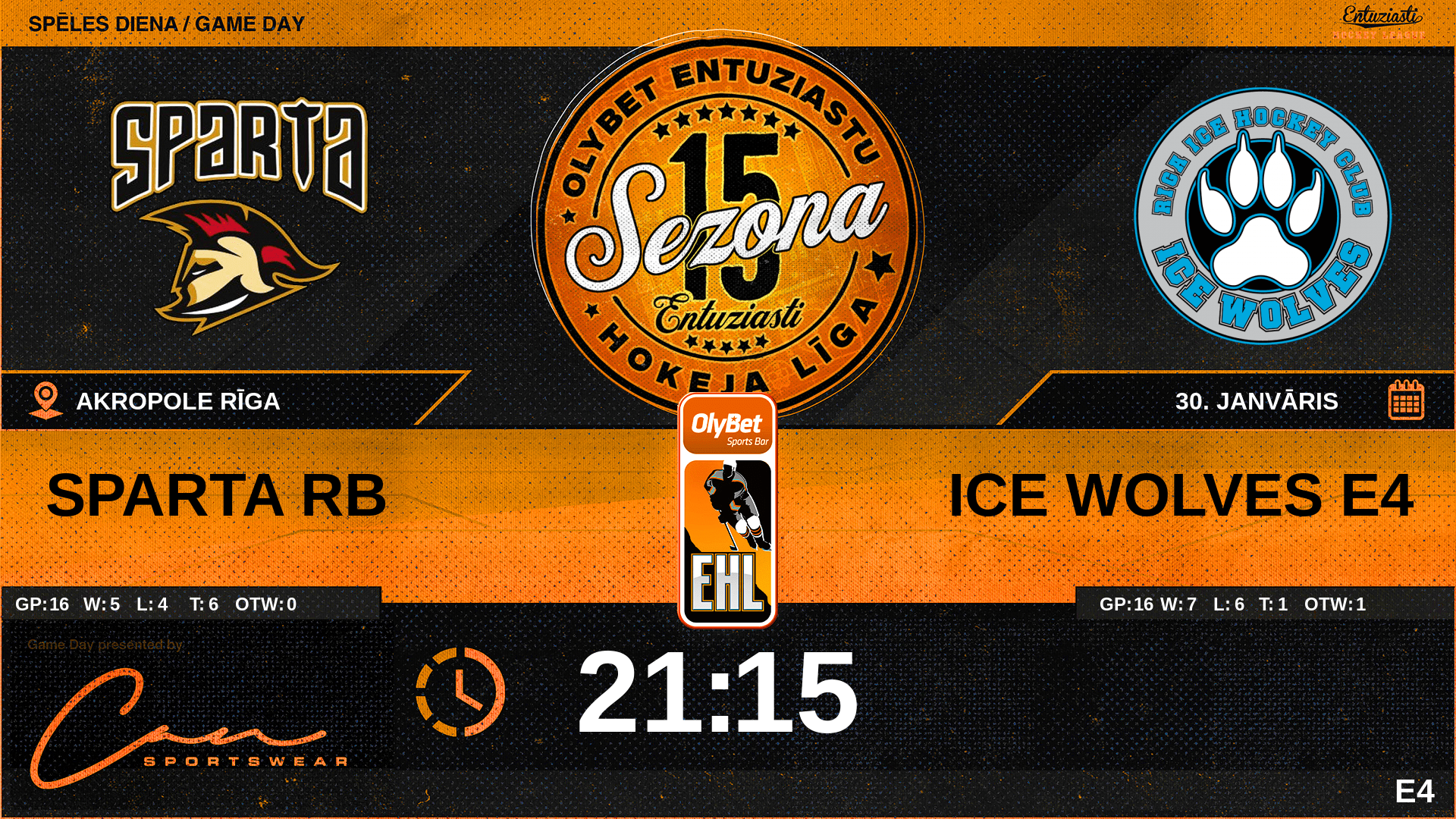 | 00:00 | WF2 | GK In | #30 Kristaps Krūze |