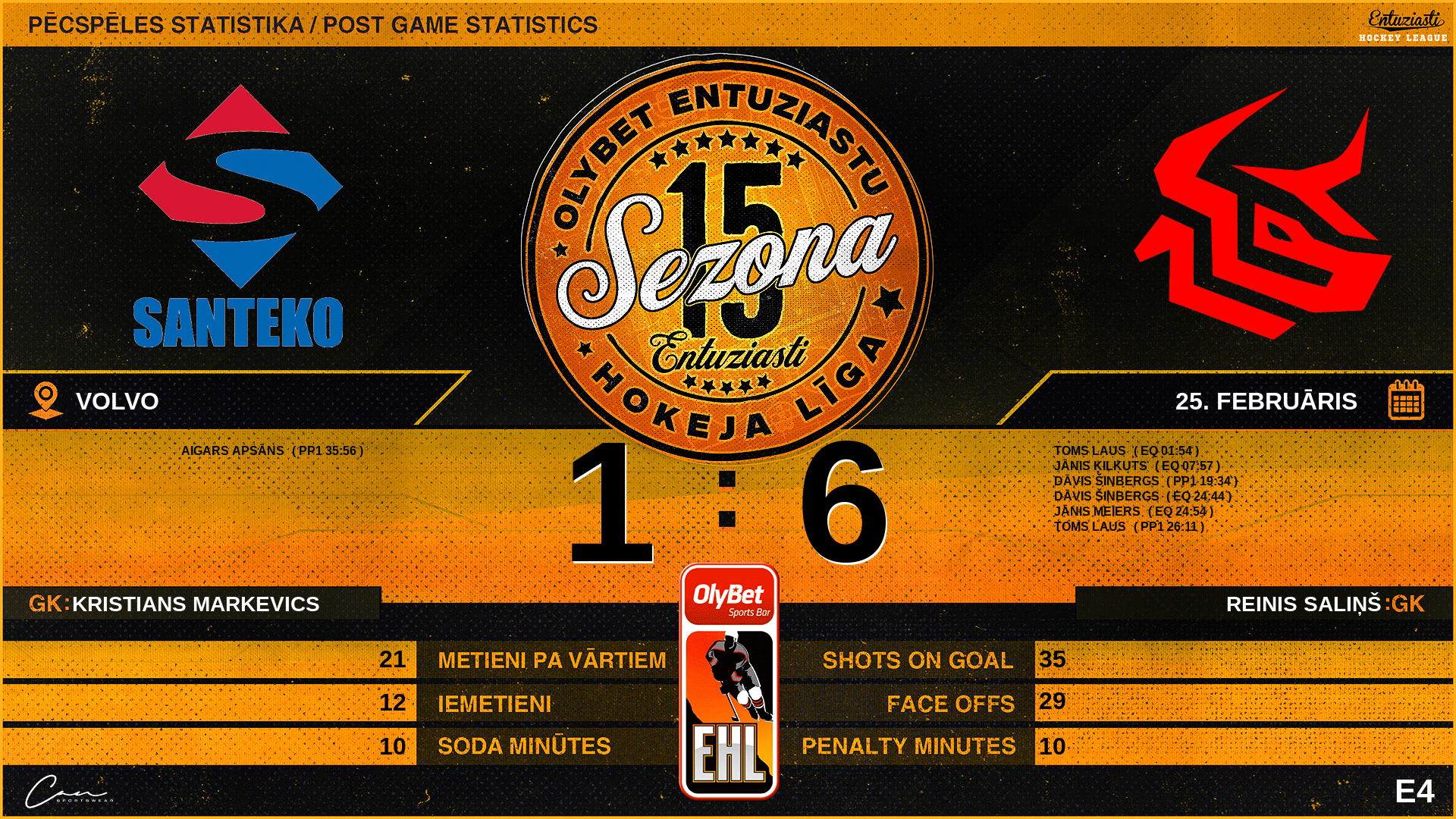 | 36:00 | TRS | GK Out | #31 Reinis Saliņš |