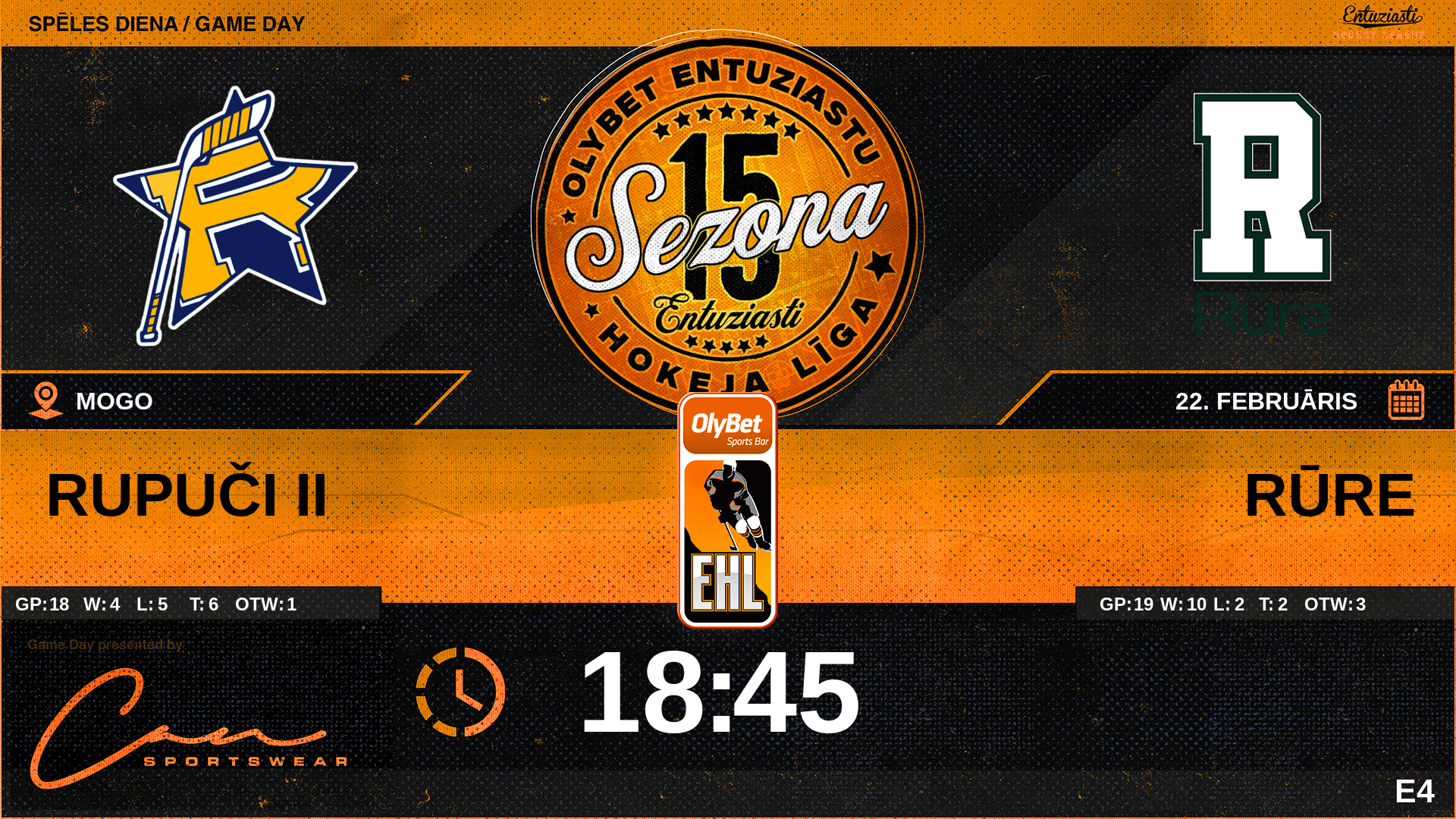 | 19:18 | RUR | Noraidījums | #34 Deniss Mireckis - Holding (2 min) |