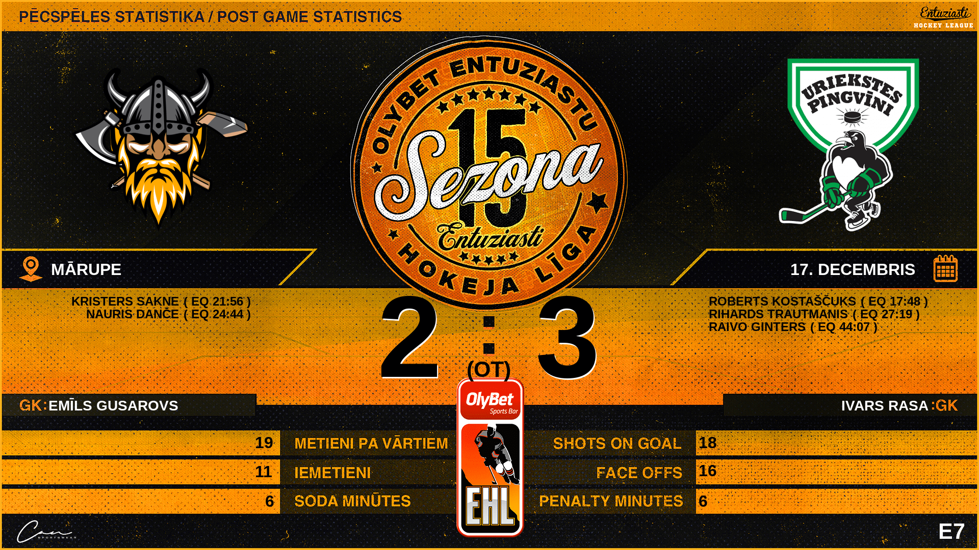 | 17:48 | UPG | Vārti (EQ) | #23 Roberts Kostaščuks, piespēles: #41 Rihards Trautmanis, #16 Jānis Sokolovs |