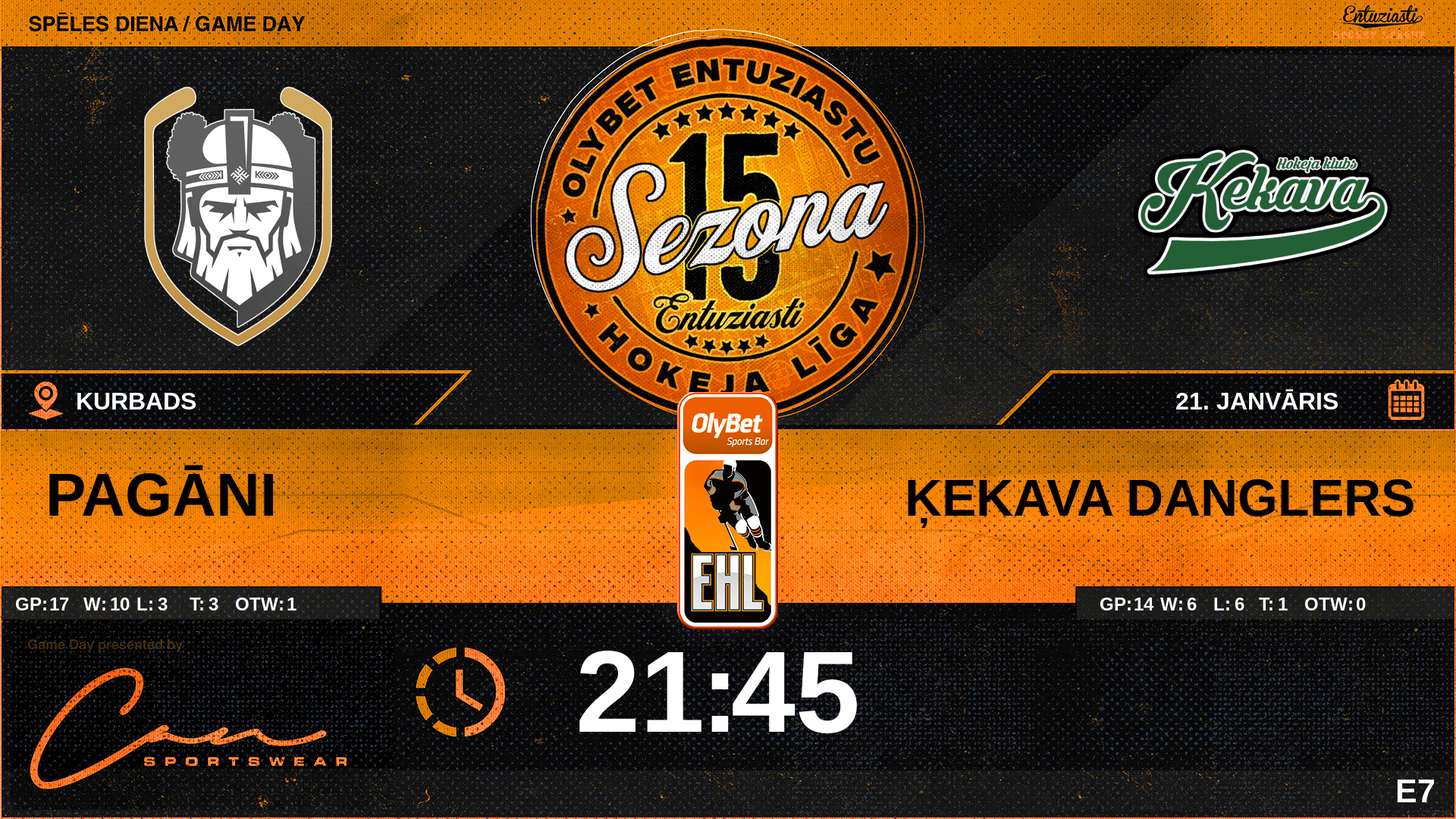| 00:00 | ĶE3 | GK In | #18 Lauris Cipruss |