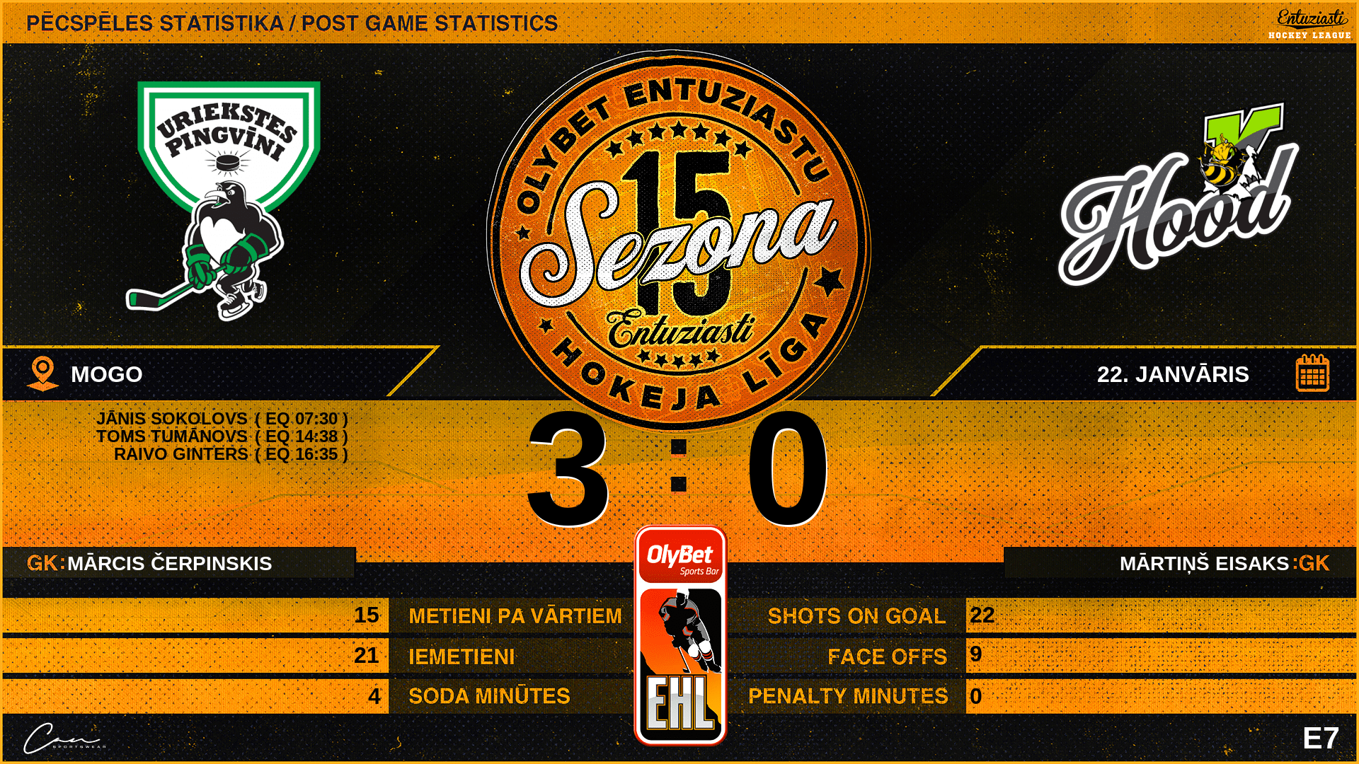 | 07:30 | UPG | Vārti (EQ) | #16 Jānis Sokolovs, piespēles: #41 Rihards Trautmanis |